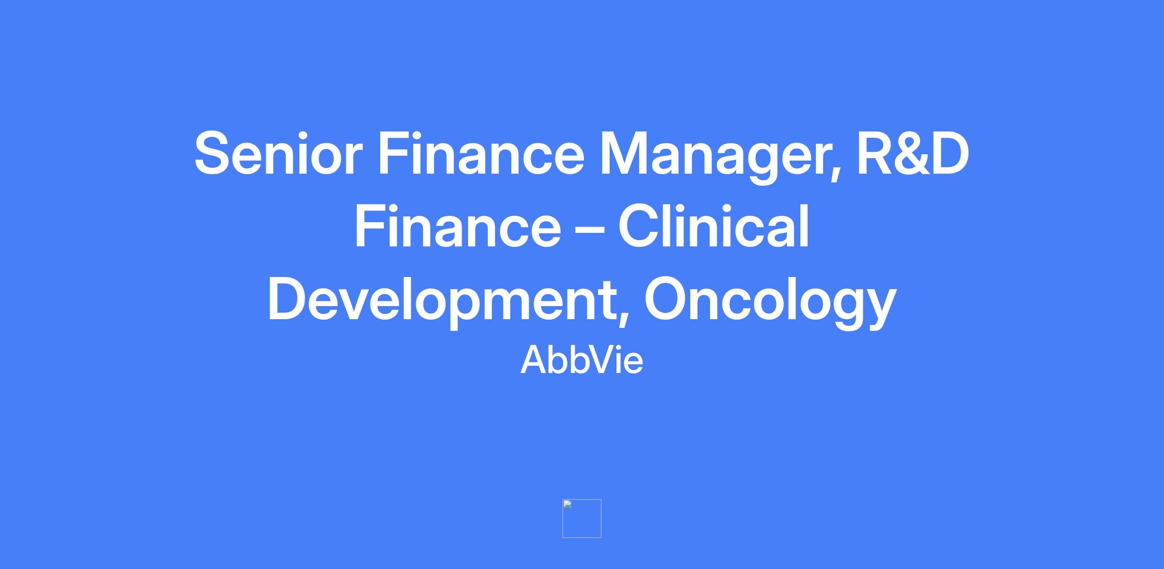 Senior Finance Manager, R&D Finance – Clinical Development, Oncology. Responsible for financial planning and analysis within R&D Clinical Development, providing data-driven decision support, managing planning processes (monthly/quarterly/LRP/LBEs), and leading a small team in Oncology Solid Tumors. Hybrid role based in Lake County, IL.