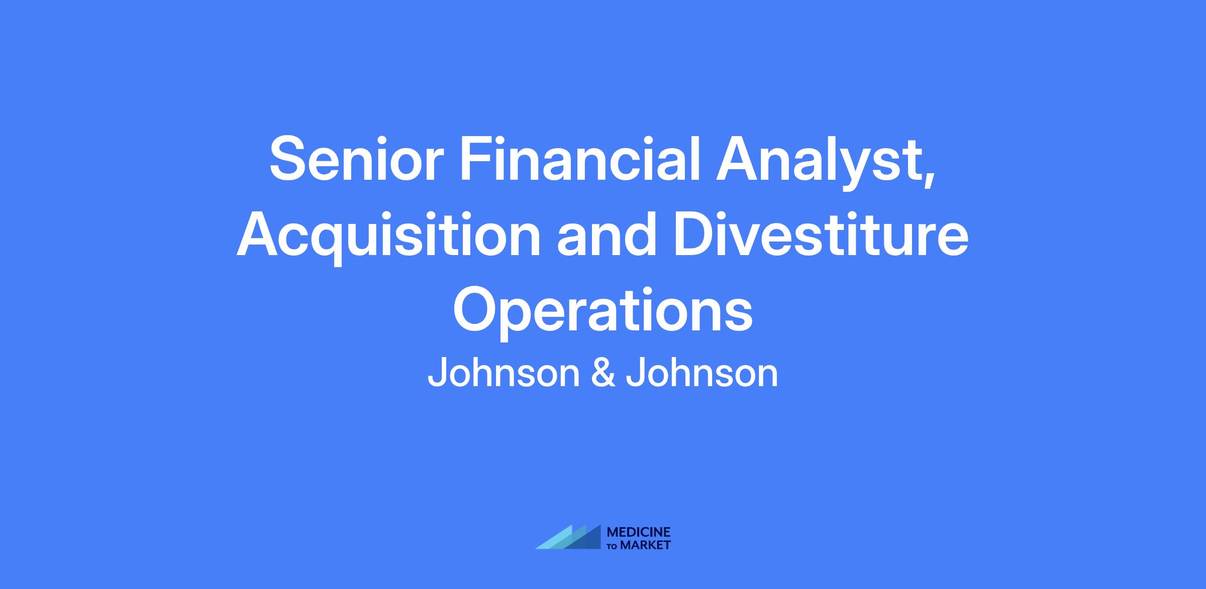 Senior Financial Analyst, Acquisition and Divestiture Operations located in New Brunswick, NJ. Support acquisition integration, divestiture audits, sell-side due diligence or separation processes across all enterprise segments, including data collection and analysis of carved-out financial statements, and assist in developing integration and separation transition plans while partnering with buyers/sellers to execute transaction close. This role offers potential for advancement within the organization based on performance.