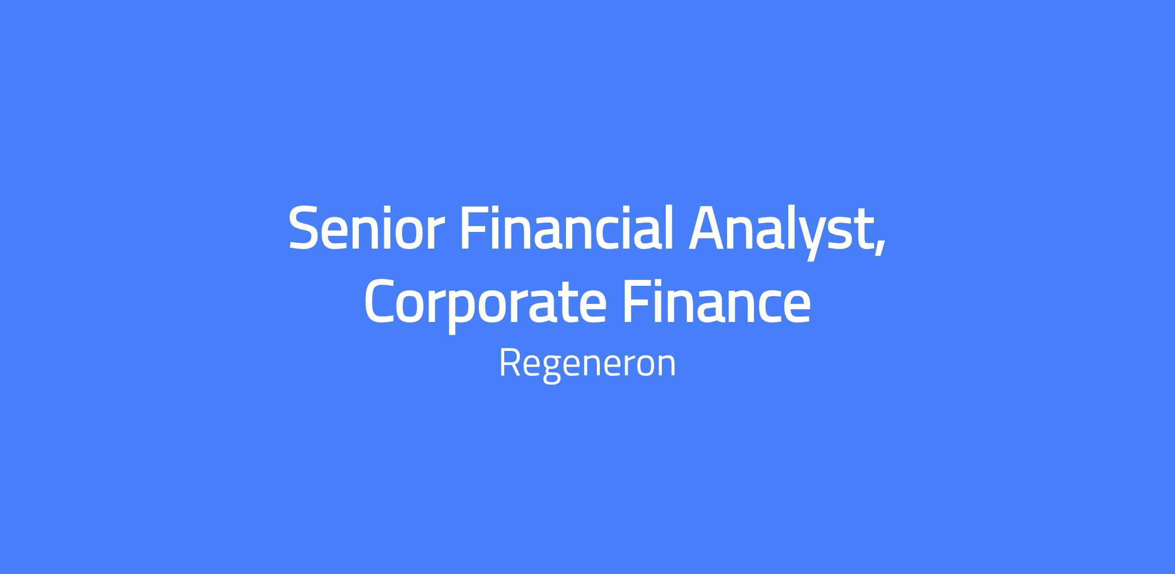 Senior Financial Analyst, Corporate Finance role within Regeneron Corporate Finance. You will prepare Board presentations, monthly finance package, earnings support package, and quarterly financial guidance packages, partnering with functional finance teams and other finance functions such as accounting, tax, and treasury.
