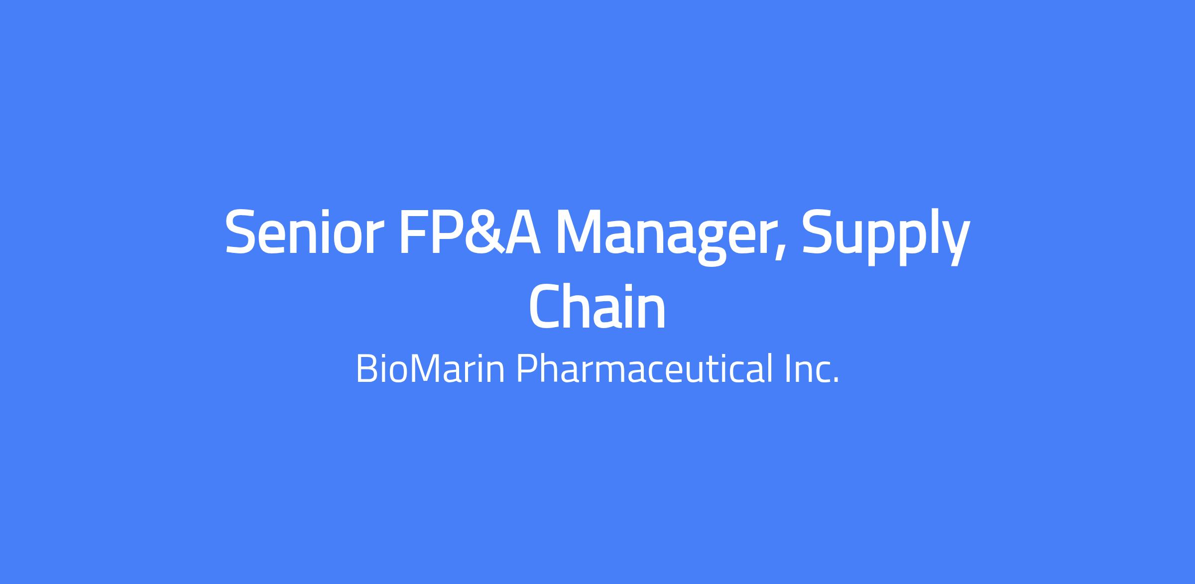 The Senior FP&A Manager, Supply Chain provides strategic financial support to BioMarin's Global Supply Chain organization in TOPS (Technical Operations). This role serves as a key business partner to the Supply Chain leadership across Sales & Operations Planning, Commercial and Clinical product supply chains (including tariff mitigation), DOH optimization, and inventory entitlement modeling. The position leads budgeting, quarterly forecasts, and long-range planning, and delivers financial analysis to guide supply chain decision making and drive operational excellence.
