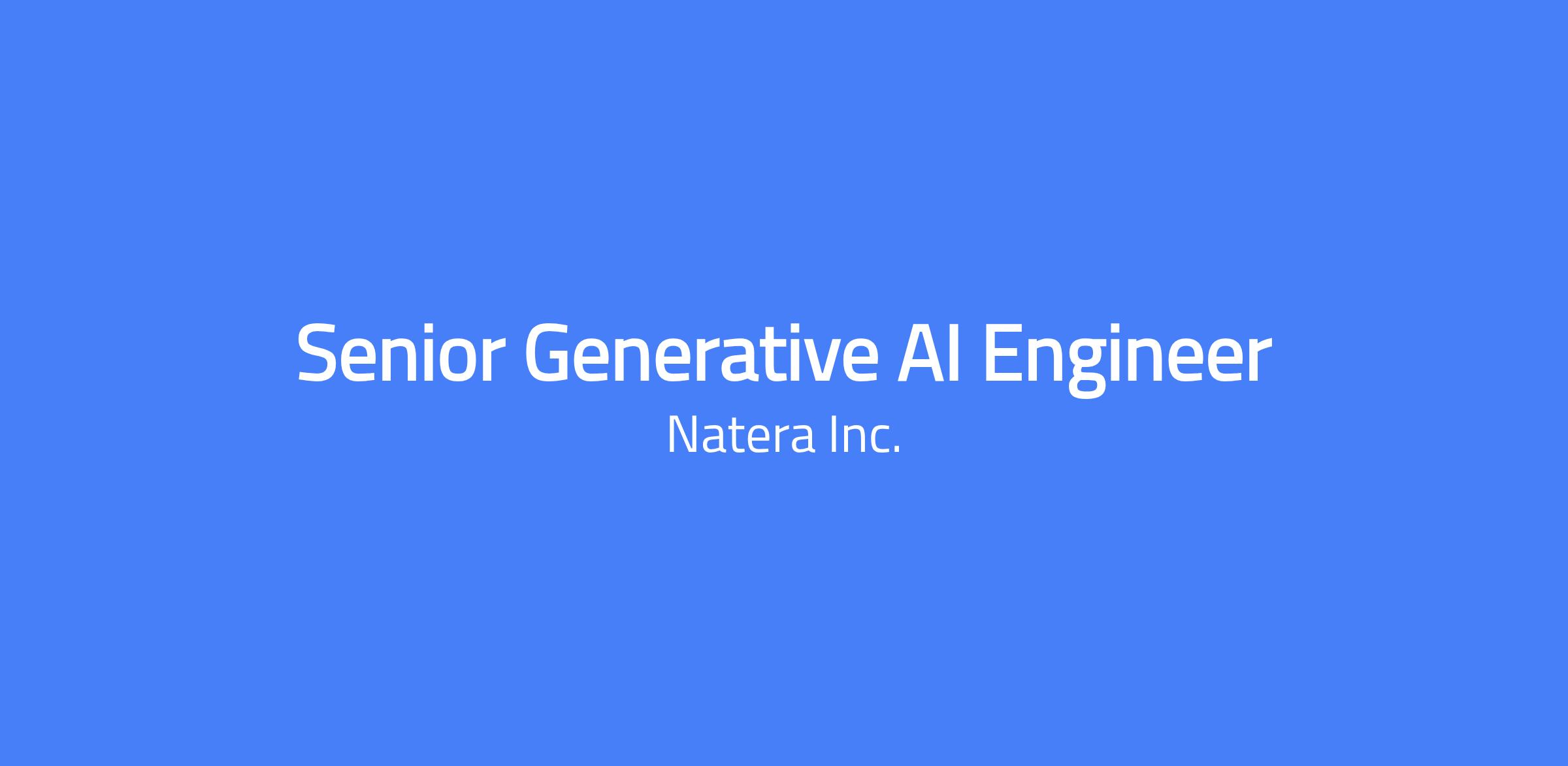 The Senior Generative AI Engineer is responsible for designing, building, and deploying Natera’s Generative AI and Machine Learning solutions. The role needs excellent hands-on AI engineering excellence to build robust, accurate, and reliable AI solutions. This role requires deep expertise in Generative AI and machine learning engineering at scale, with a passion for building solutions that directly impact patient outcomes and clinical innovation.