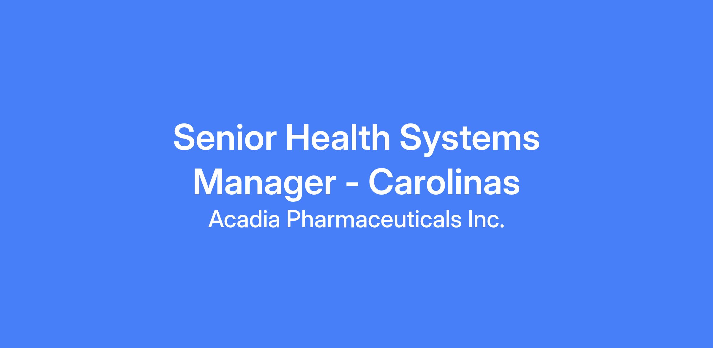 Join Acadia as a Health Systems Manager/Senior Manager in the Carolinas region to build and nurture relationships with leading healthcare institutions, Centers of Excellence, hospitals, and thought leaders. Identify collaborative opportunities that improve access to innovative treatments and expand Acadia’s impact in the healthcare landscape. This strategic role focuses on driving strategy to implementation and pull-through at account and customer levels.