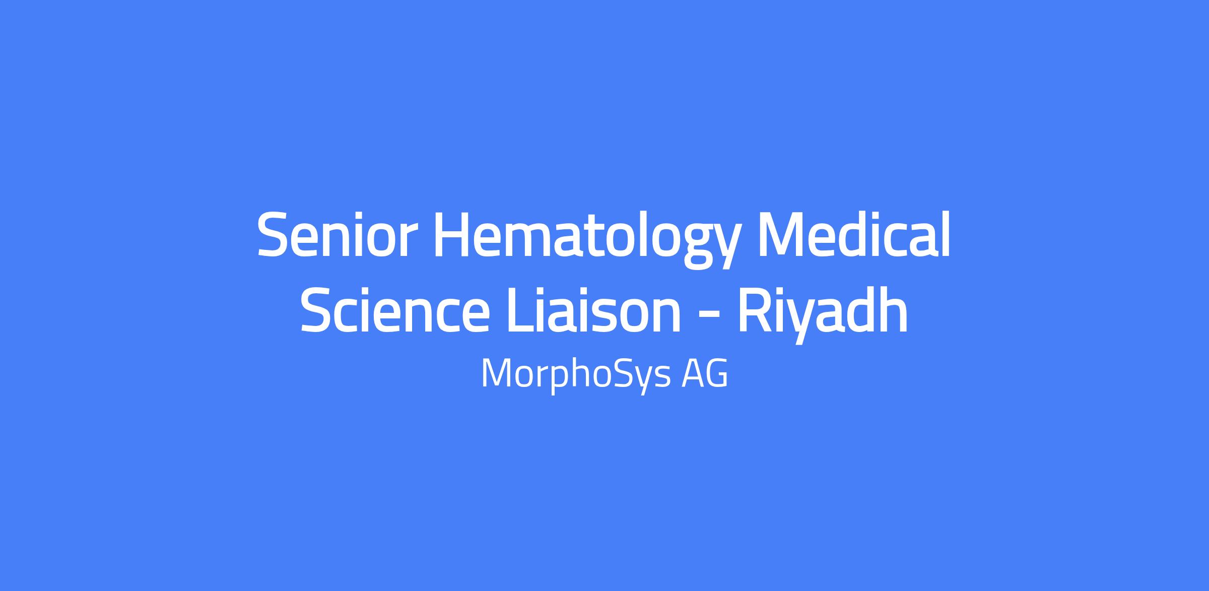 Senior Hematology Medical Science Liaison - Riyadh