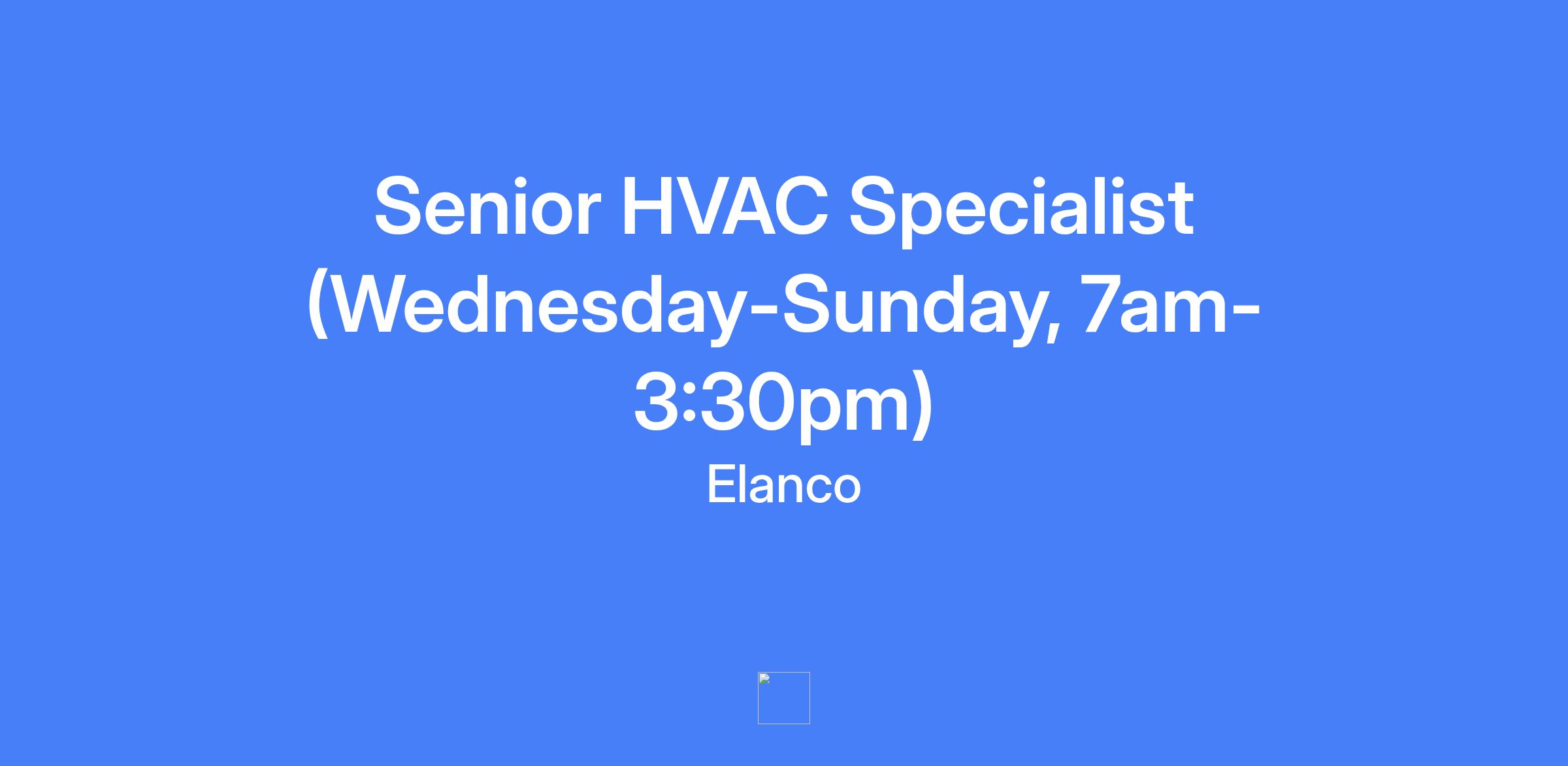 Senior HVAC Specialist (Wednesday-Sunday, 7am-3:30pm). Primary focus on supporting heating, ventilating and air conditioning (HVAC/R) systems with maintenance activities for air handling equipment, freezers, coolers, ultra-low freezers, filtration, chillers, refrigeration equipment, circulation pumps, and chemical treatment for cooling towers and related building systems.