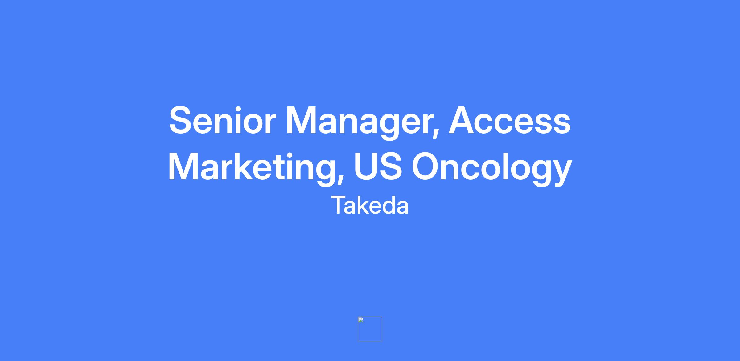 Senior Manager, Access Marketing, US Oncology. Part of the Oncology Access Marketing team, reporting to the Head of Access Marketing and Patient Services. Contributes to the vision of curing cancer by delivering access strategies and market insights within Takeda Oncology.