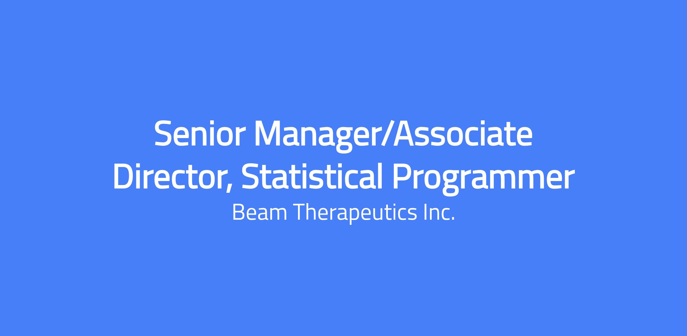Beam is looking for a Senior Manager/Associate Directorย of statistical programming to join our growing Statistical Programming team in the Biometrics department. This individual will be responsible for developing and maintaining statistical programming functions within a therapeutic area to support various clinical studies and submissions to ensure successful execution for Beamโs clinical programs. In this role, you will work with the head of statistical programming and the head of biometrics to develop statistical programming strategies, SAS programming infrastructure as well as department standards, applications and processes. You will manage CROs, oversee programming activities and provide timely support to the cross-functional teams on statistical programming matters according to the project strategies and requests.