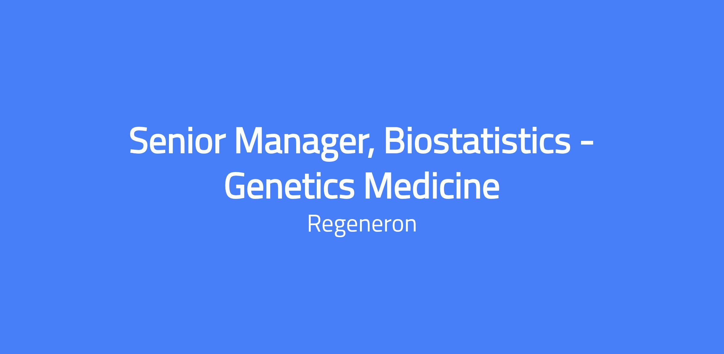 Senior Manager, Biostatistics - Genetics Medicine at Regeneron. Support Clinical Biostatistics within Global Development, collaborating with cross-functional teams to frame statistical approaches, design studies, analyze data, and interpret results to inform decision making. Lead mentoring of junior statisticians and contribute to training, infrastructure development, and external engagement.