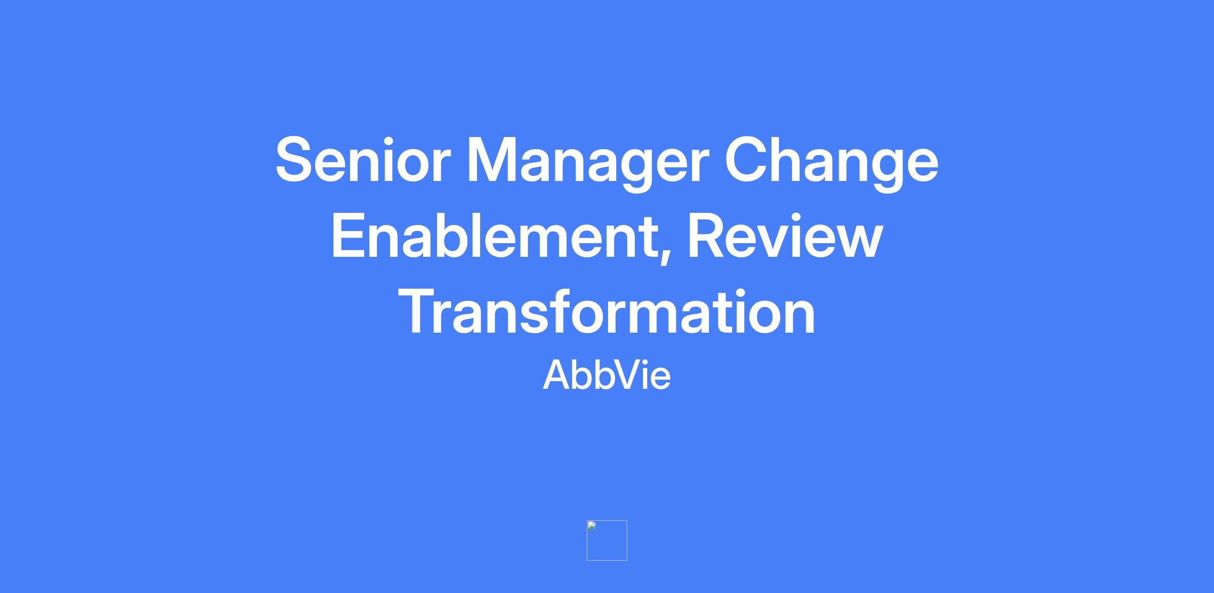 The Senior Manager Change Enablement drives adoption of transformative solutions for AbbVieโs Material Review Process (MRP), including AI-enhanced processes. As a visible change leader, this role inspires teams, influences stakeholders without authority, and fosters adaptability across cross-functional initiatives in a complex matrixed environment.