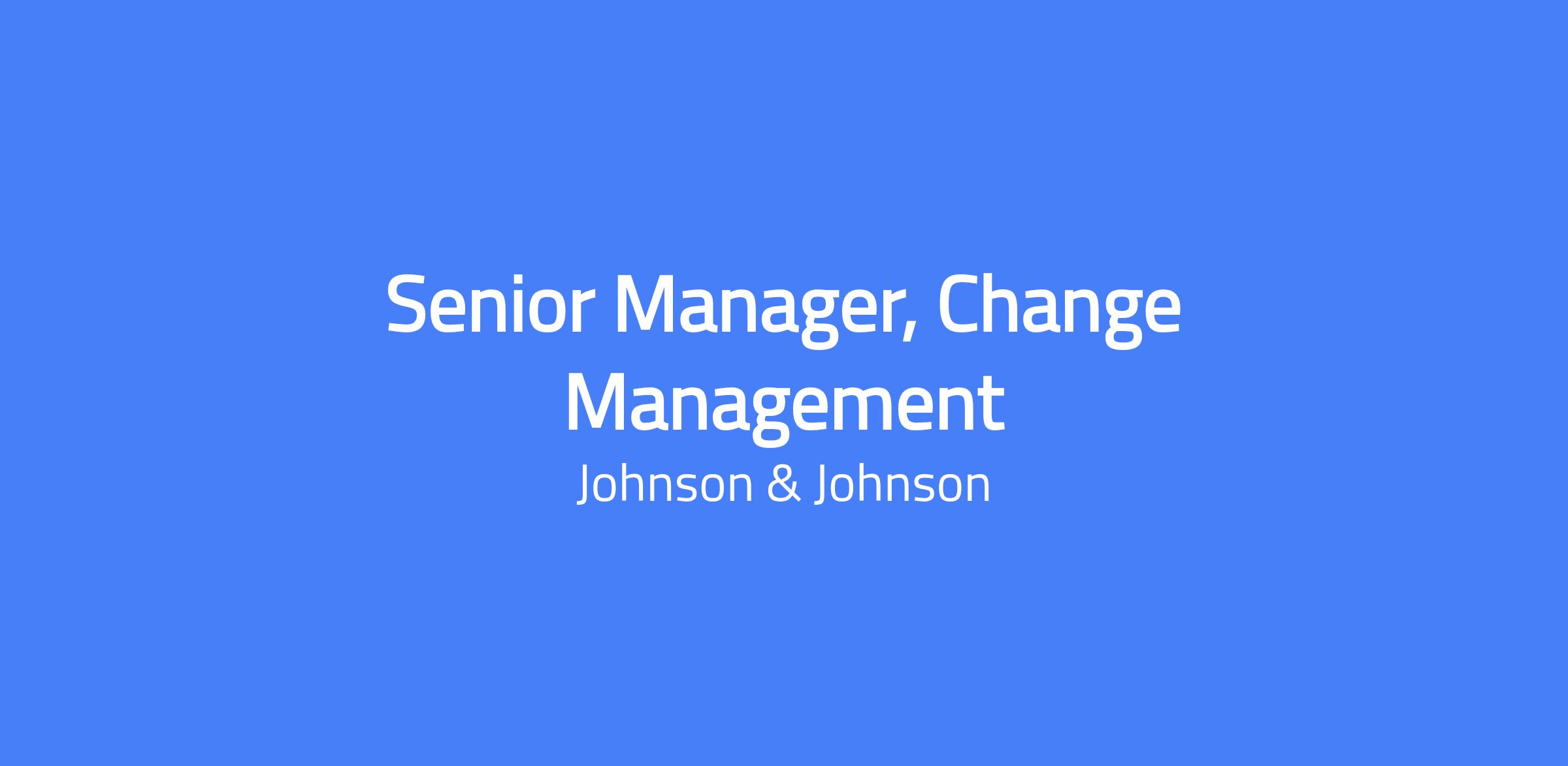 Senior Manager, Change Management, based in New Jersey (preferred New Brunswick, NJ). The Change Management Leader advances the change strategy for Technology initiatives by integrating closely with program leadership to develop tailored, human-centered change strategies. This role drives execution across the full lifecycle—from readiness through sustainment—to enable successful adoption, measure impact, and support enterprise-wide transformation. As a senior member of the Change & Engagement Chapter, you will influence at scale, guide leaders through complex change, and shape the behaviors, mindsets, and capabilities required to accelerate Technology’s transformation agenda.