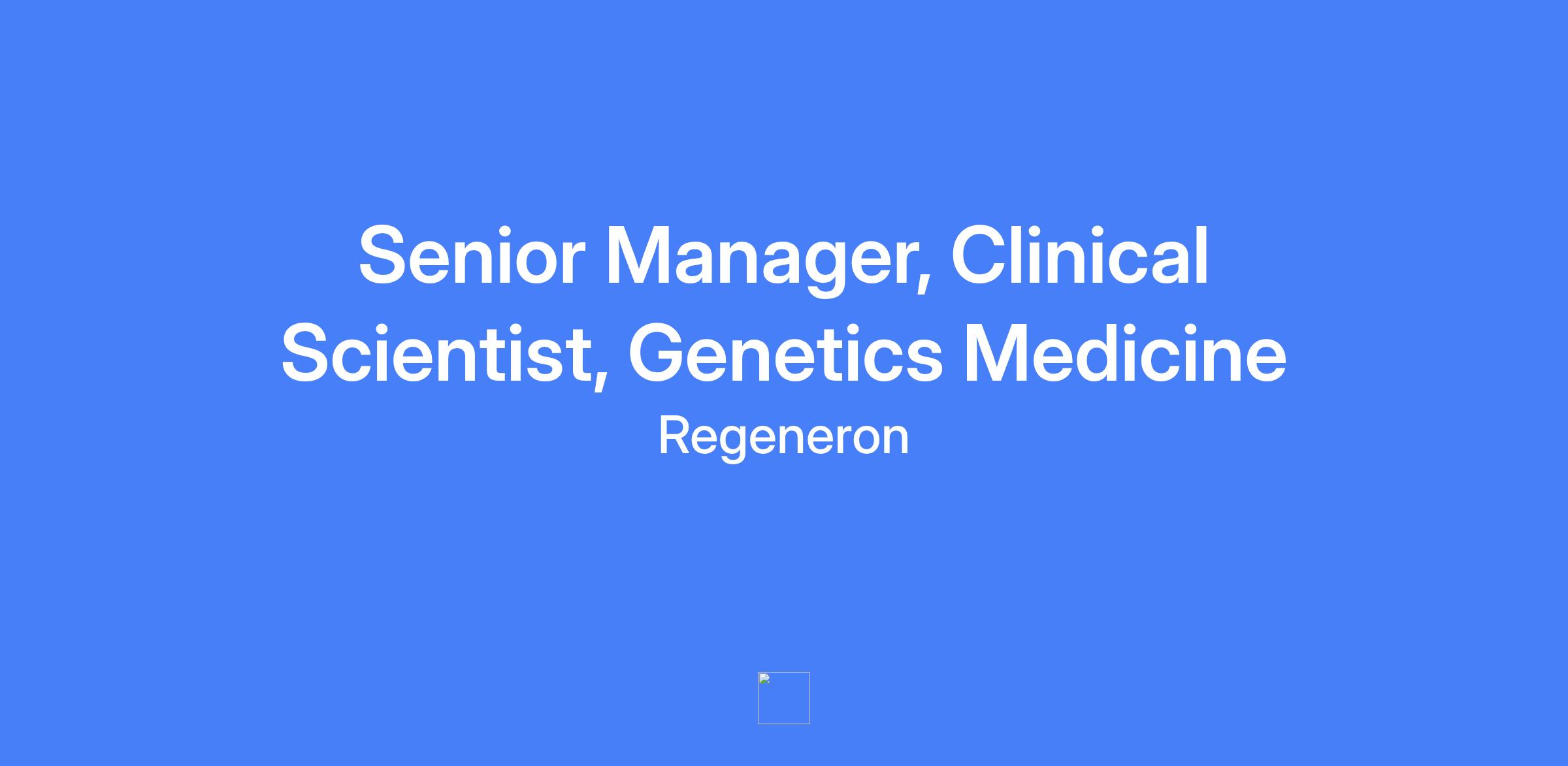 Senior Manager, Clinical Scientist, Genetics Medicine. We are seeking a Senior Manager to join our Clinical Sciences team within Regeneron Genetics Medicine. Qualified scientist with training in the pharmaceutical/biotechnology sector, or academic or clinical setting. You will work closely with supervisor and other members of the cross-functional team, contribute to early development and clinical experimentation for projects from discovery through Proof of Concept (POC).