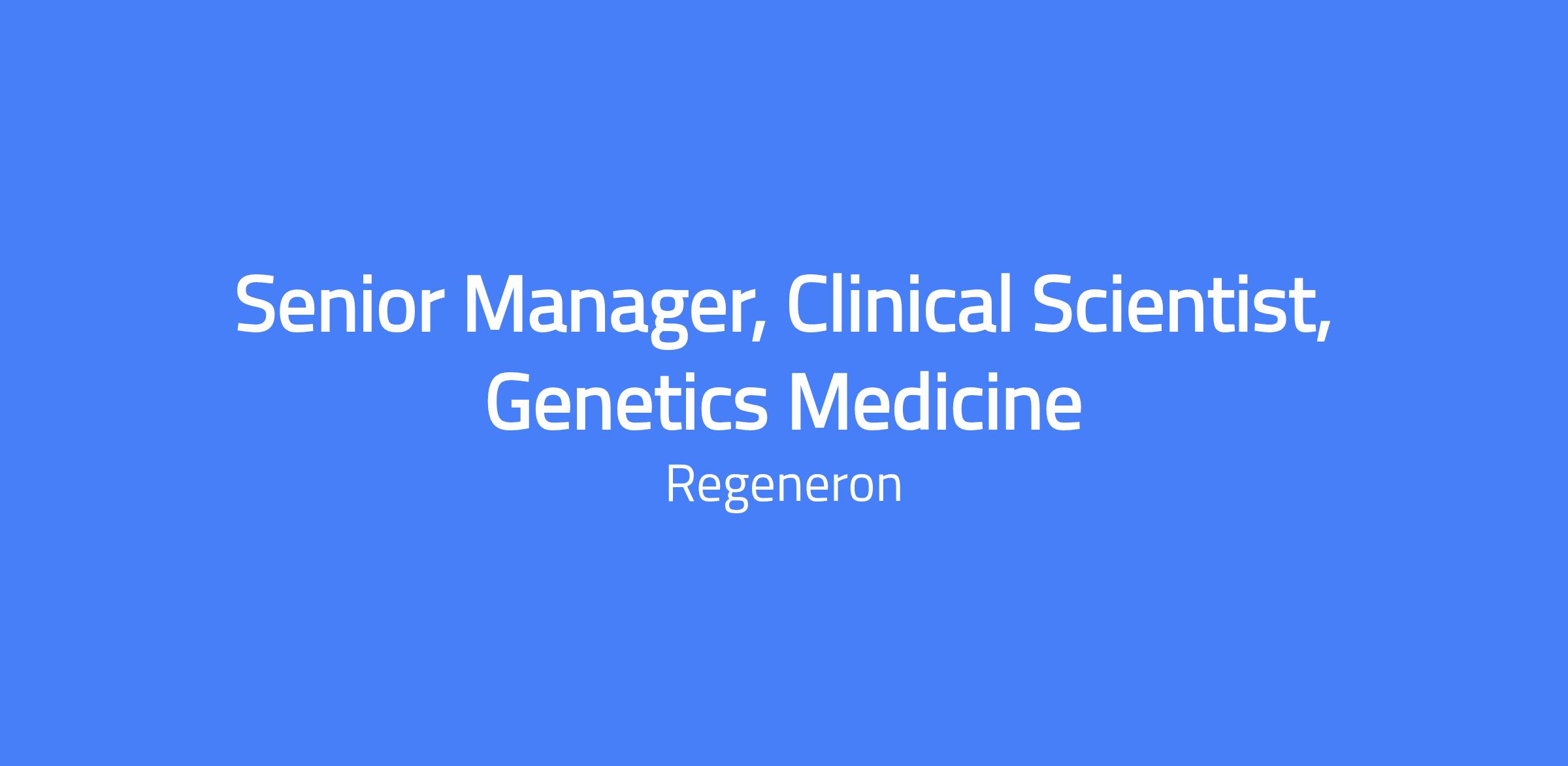 We are seeking a Senior Manager to join our Clinical Sciences team within Regeneron Genetics Medicine. Qualified scientist with training in the pharmaceutical/biotechnology sector, or academic or clinical setting. You will work closely with supervisor and other members of the cross-functional team, contributes to early development and clinical experimentation for projects for discovery phase through Proof of Concept (POC).