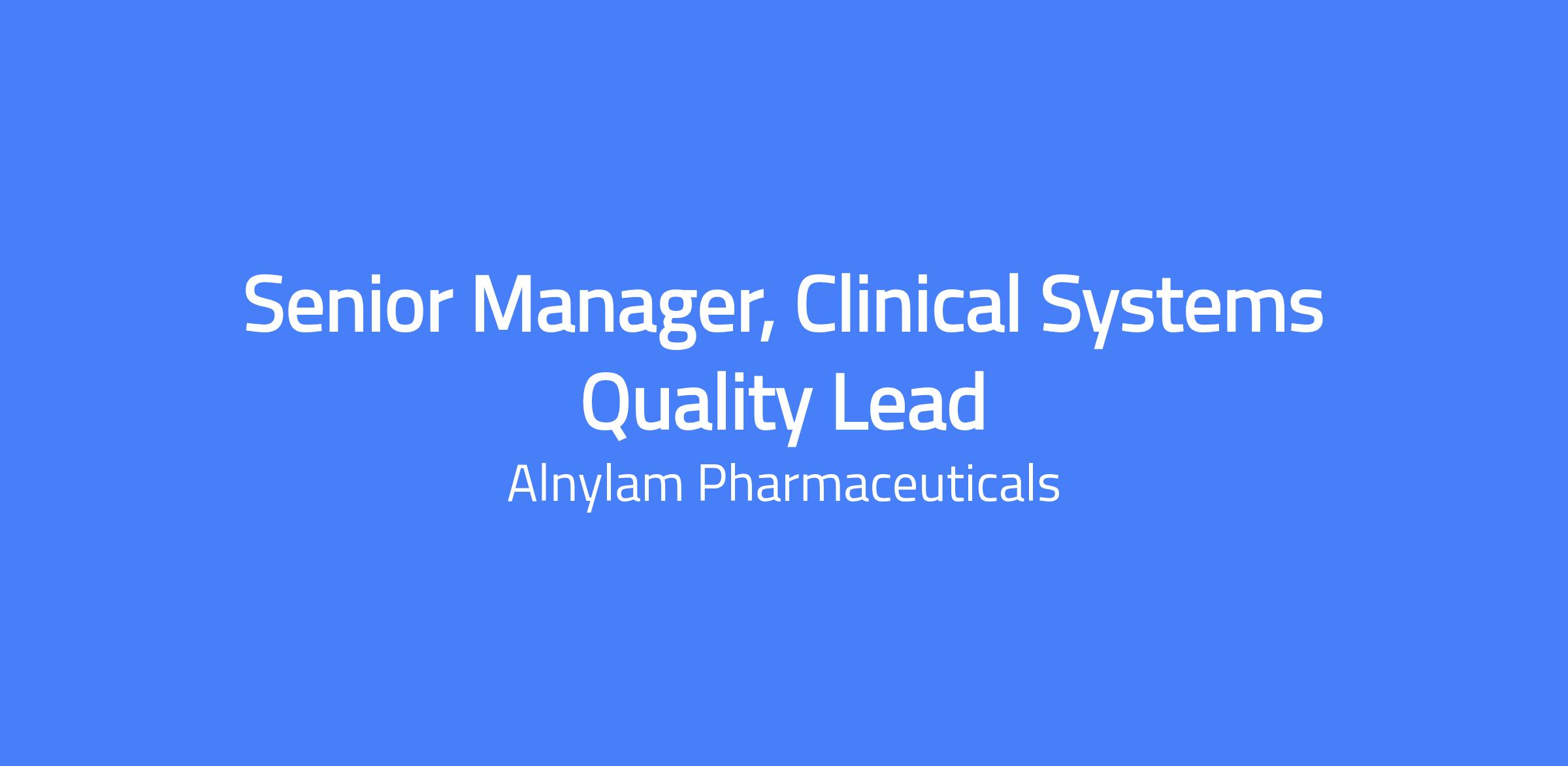 The Senior Manager, Clinical Systems Quality Lead is responsible for developing and implementing the process and framework for the assessment and management of GCP technologies across Alnylam Clinical programs, including development, validation, implementation, and oversight. The role will establish expectations for technology selection, study-specific user requirements and testing approaches, documentation standards, and oversight responsibilities. It requires close collaboration with Global Quality Assurance (GQA), Clinical Development, and IT to ensure the suitability, integrity, and regulatory compliance of both vendor-hosted and internal technologies that support trial conduct and data collection.