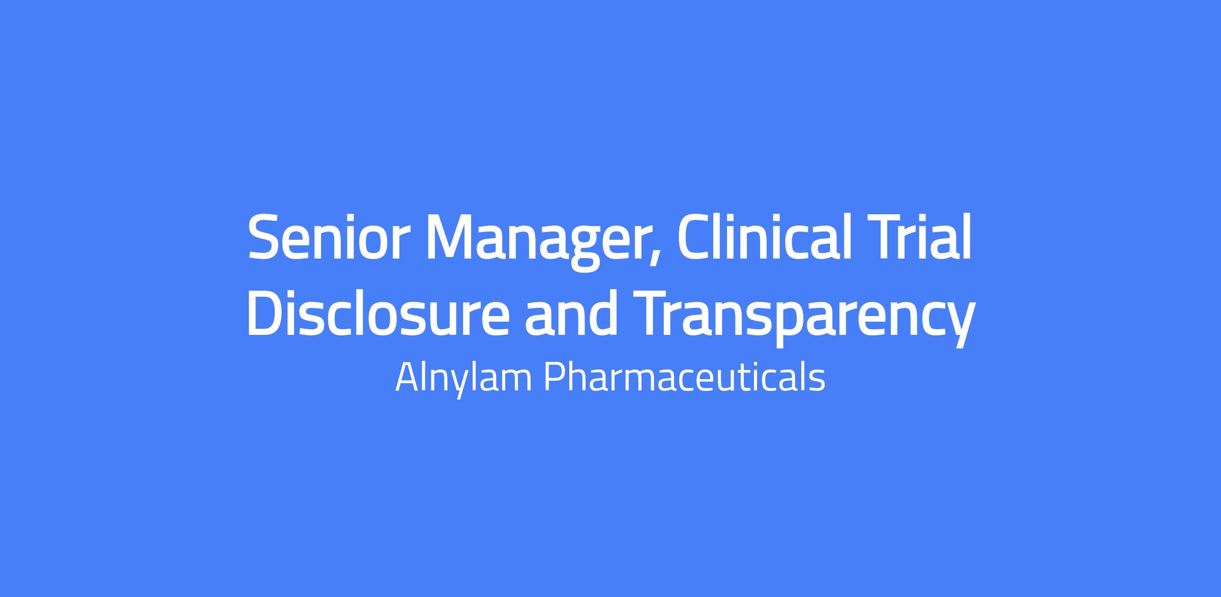 The Senior Manager, Clinical Trial Disclosure and Transparency is a key member of the Clinical Trial Disclosure and Transparency (CTDT) team working within the Alnylam Medical Writing Expertise Area. The Senior Manager, CTDT is responsible for expertly carrying out operations for the accurate and timely disclosure of Alnylam trial information to regulatory agencies and publicly accessible clinical trial websites.