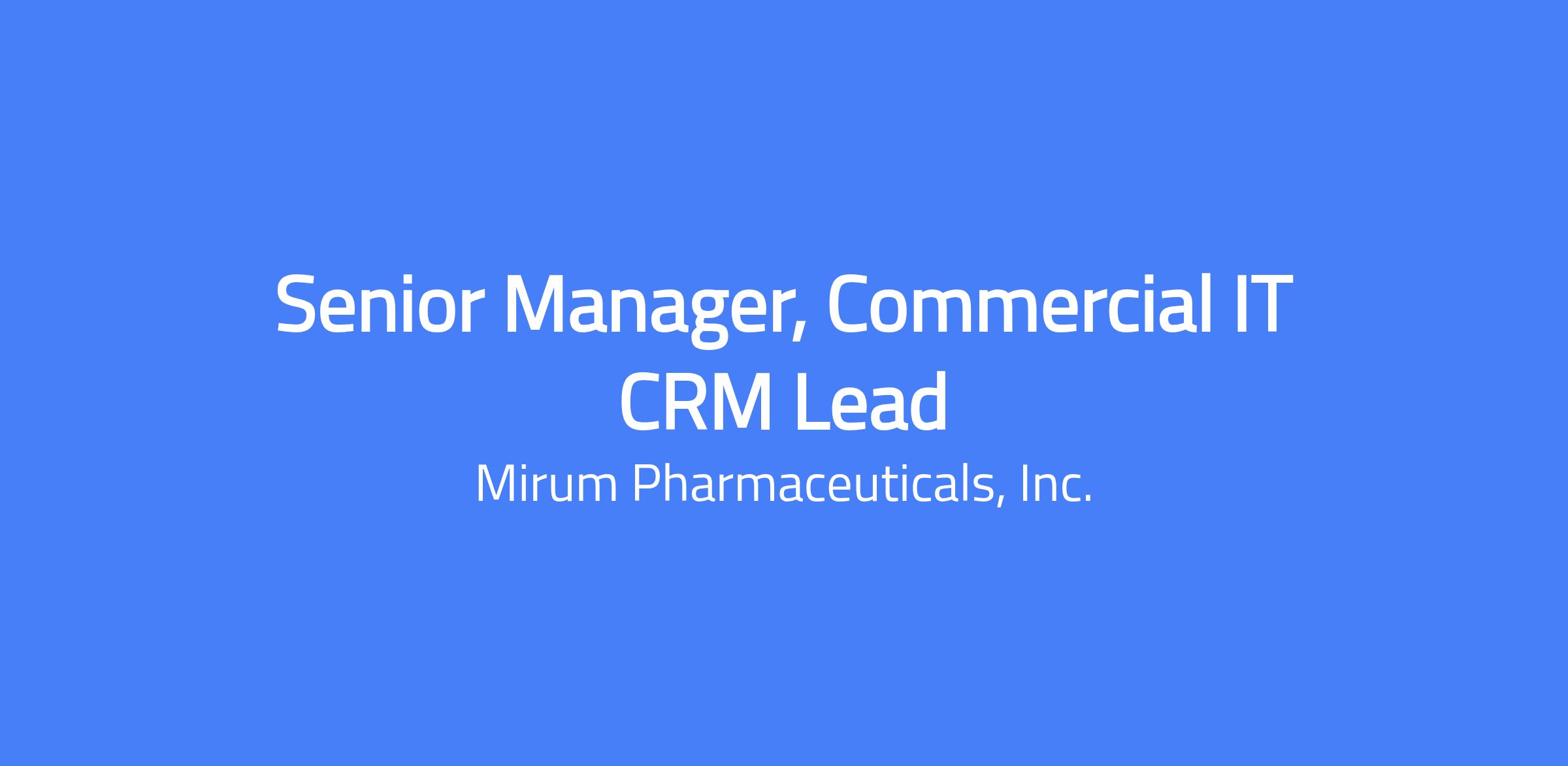 This role will be responsible for owning and supporting Mirum’s Salesforce Life Sciences Cloud (SFLC) platform that powers the Patient CRM and HCP Portal. It serves as the IT Platform lead with accountability for platform stabilization, operational excellence, and scalability after the initial implementation and go-live of the Patient Services Hub. Over time, the role will expand to support additional Commercial systems related to customer engagement platforms. The ideal candidate is a CRM platform leader with deep experience in regulated life sciences environments, complex CRM implementations, and cross-system integrations.