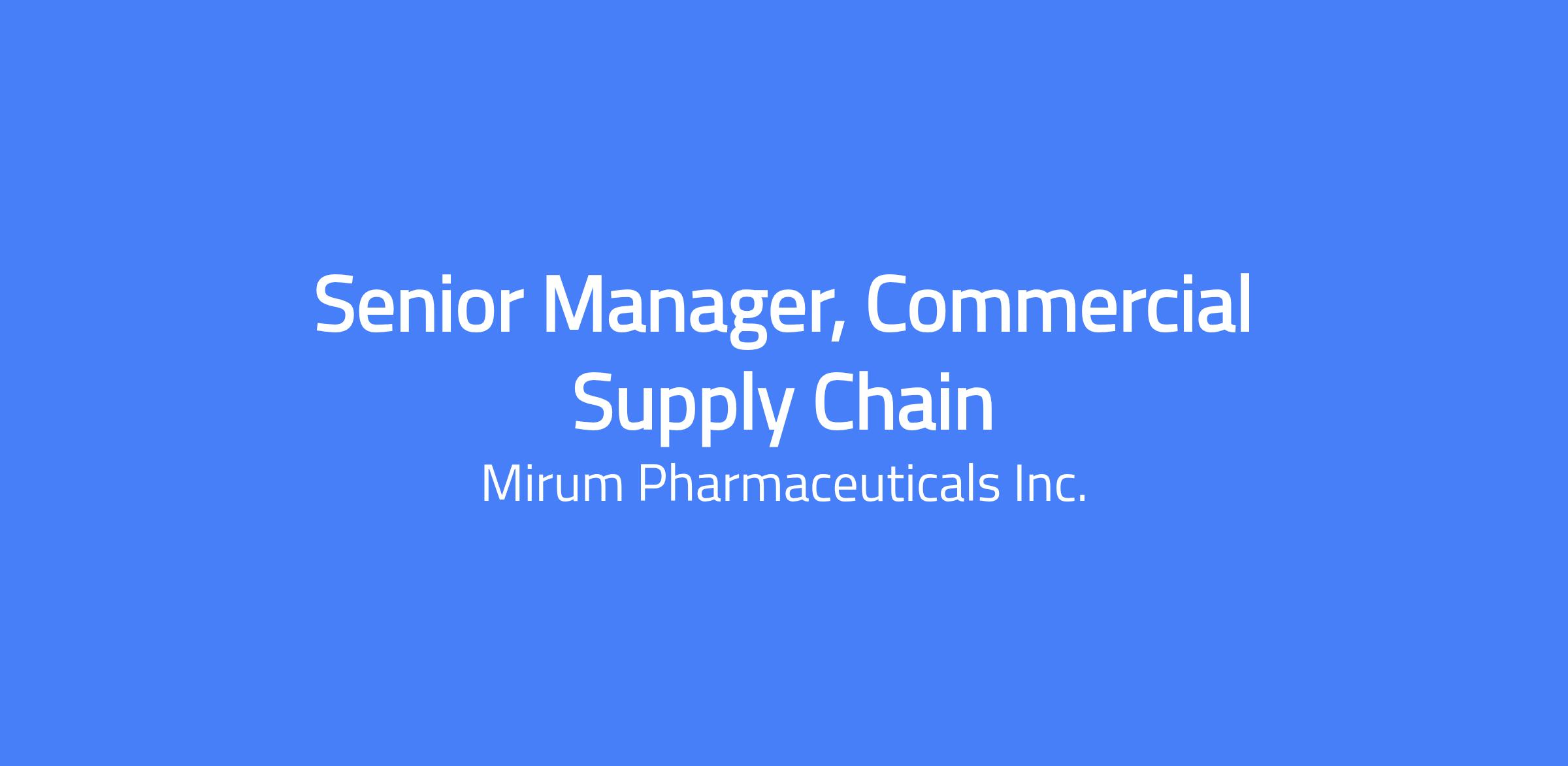This is a highly integrated role that will work cross-functionally partnering with Mirum’s internal functions/SMEs and external partners to ensure supply continuity.