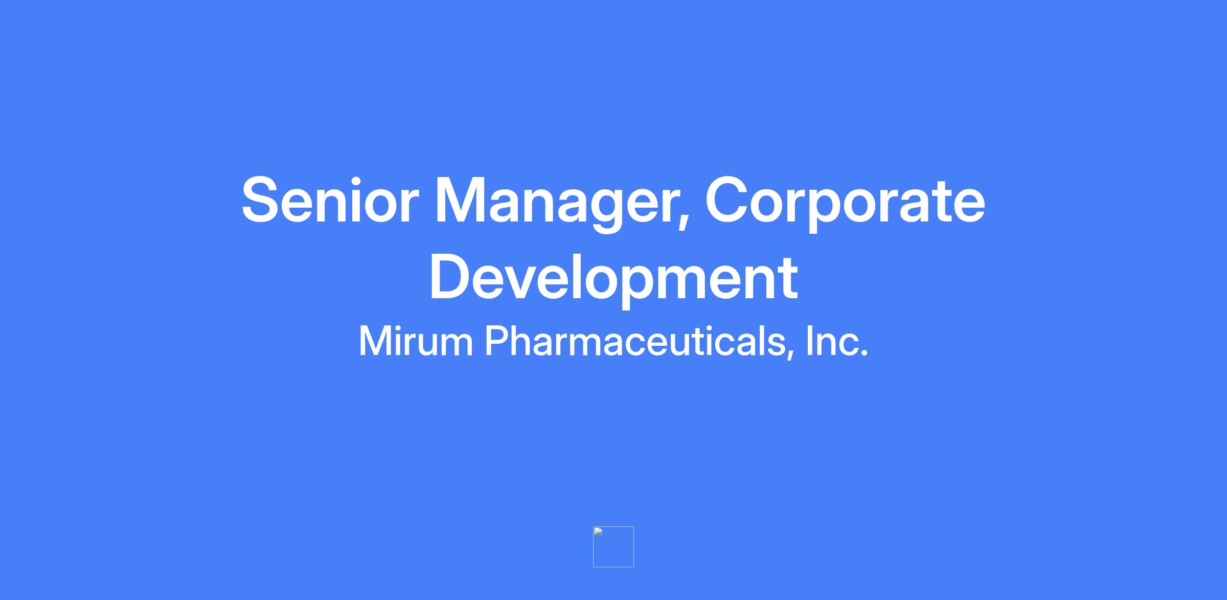 Senior Manager, Corporate Development role focusing on evaluating partnering opportunities, transactions, and strategic initiatives within Mirum Pharmaceuticals.