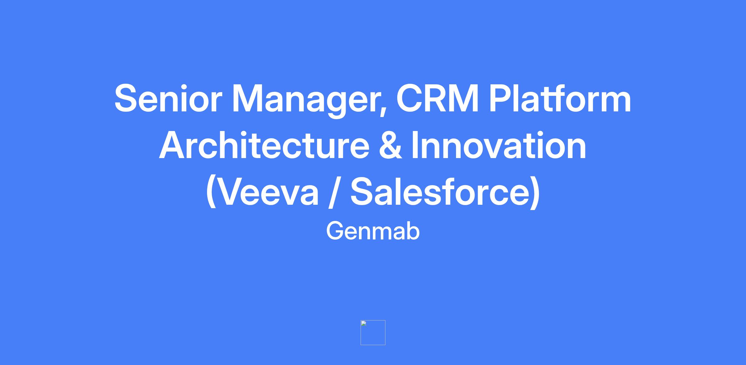 Senior Manager, CRM Platform Architecture & Innovation (Veeva / Salesforce) to lead and govern Genmab’s CRM and allied commercialization platforms, ensuring scalable, compliant, integrated, and insights-driven solutions across global markets. Responsible for shaping the technical and strategic roadmap and acting as the hands-on guardian of the CRM ecosystem in a hub-and-spoke commercialization model.