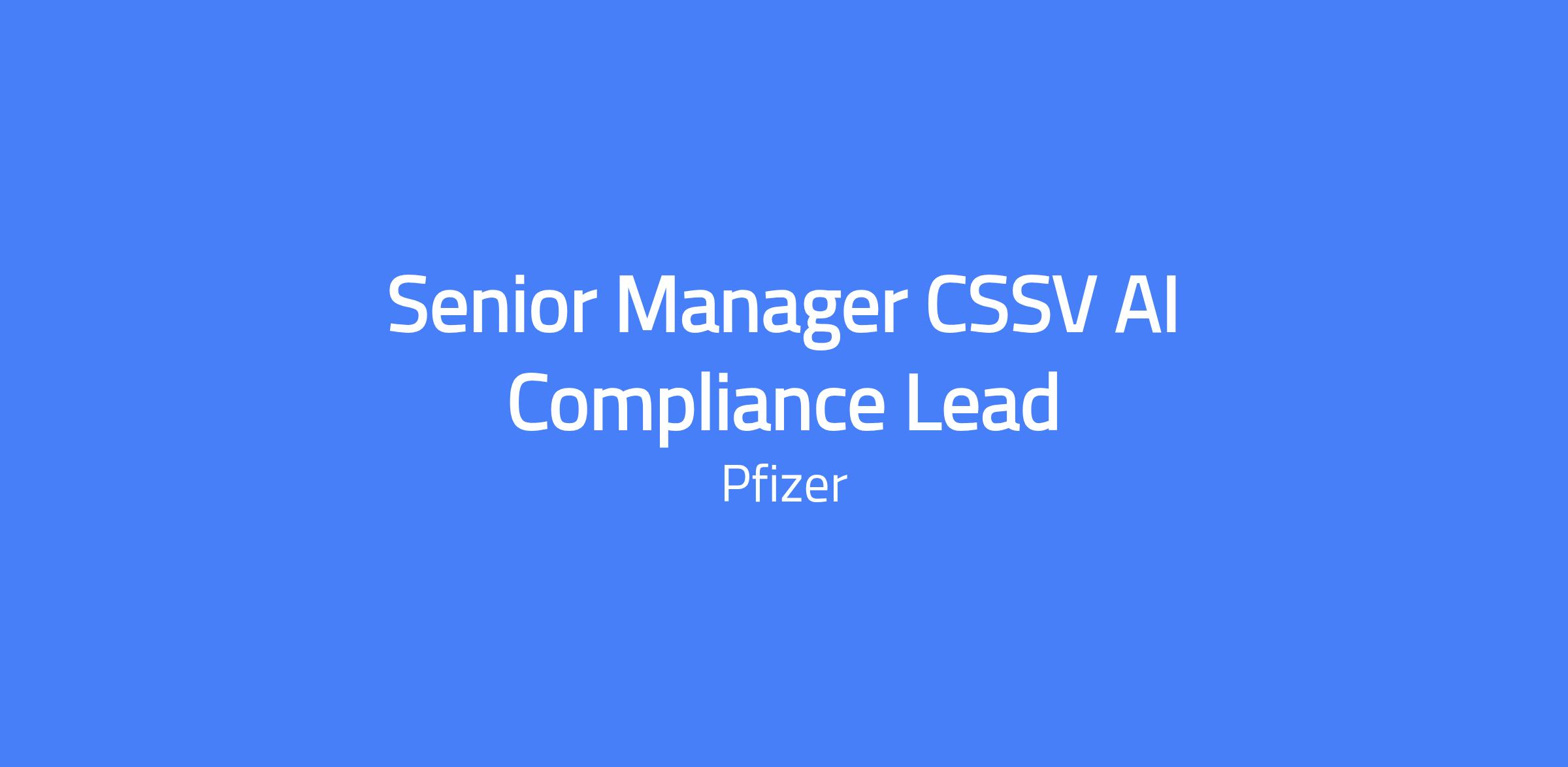 Senior Manager CSSV AI Compliance Lead. This role provides strategic leadership and operational quality oversight for development, deployment and enablement of GxP AI capabilities across QSEO and PGS Operations. The AI Compliance Lead enables the deployment of AI initiatives while mitigating risk, and partners with QSEO GPOs and BSOs, Digital, Legal and other stakeholders to ensure AI capabilities built in Pfizer or by third parties adhere to external regulatory requirements and Pfizer policy. The role helps develop and maintain the AILC framework for PGS, including the inventory of use cases and risk management strategy and tools for AI assessment. Location: Hybrid.