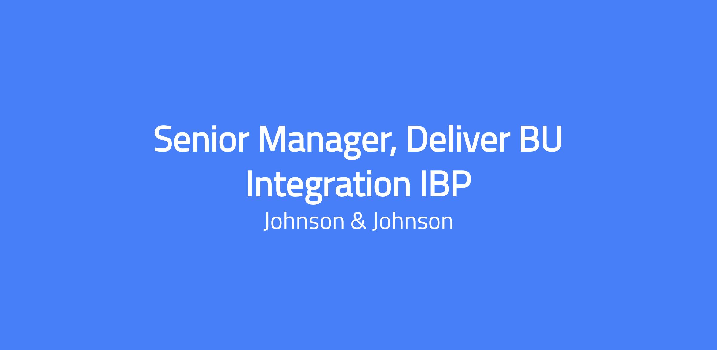 Job Title: Senior Manager, Deliver BU Integration IBP