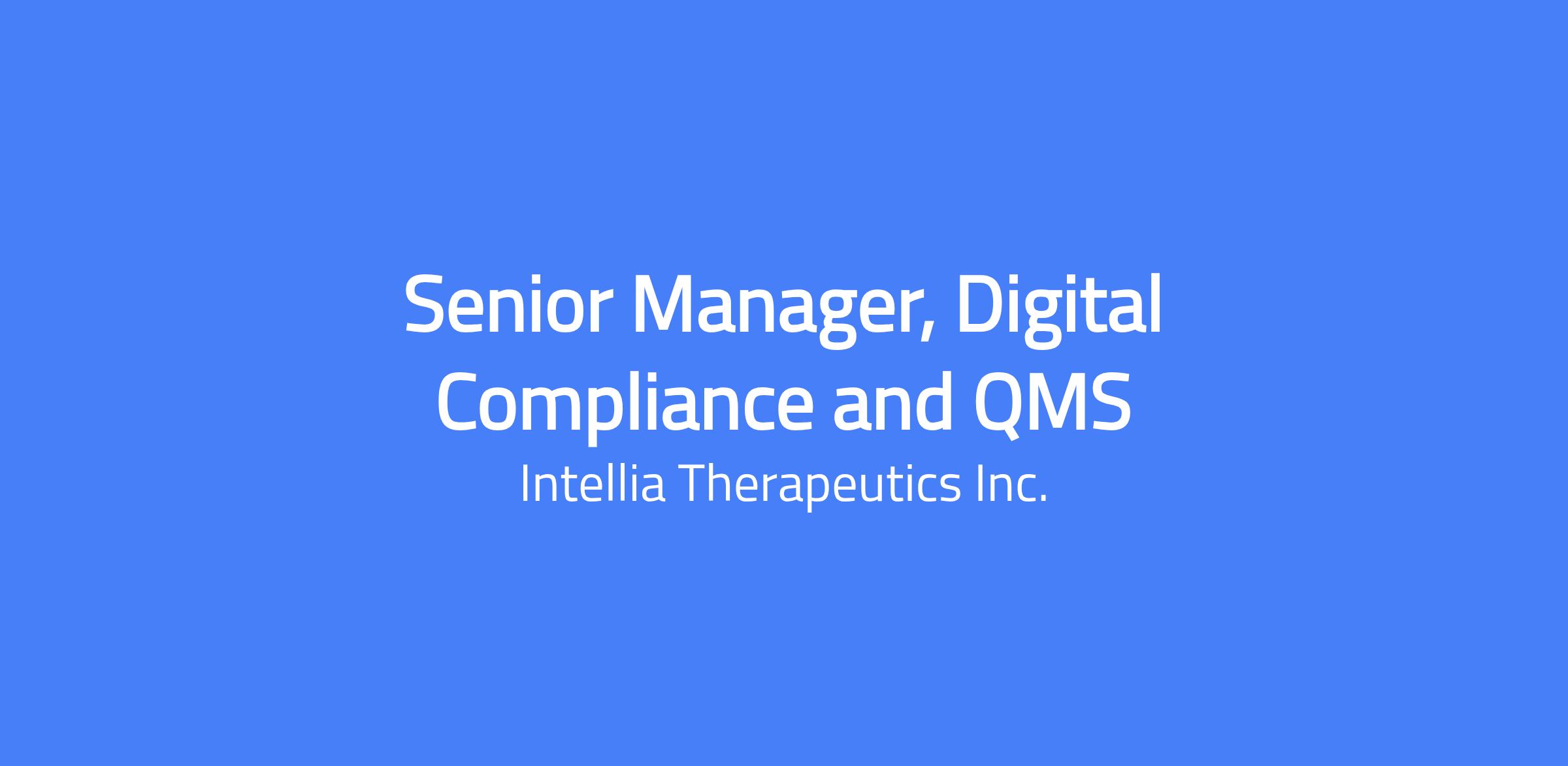 Why Join Intellia? Our mission is to develop curative genome editing treatments that can positively transform the lives of people living with severe and life-threatening diseases. Beyond our science, we live our four core values: One, Explore, Disrupt, Deliver and feel strongly that you can achieve more at Intellia. We have a single-minded determination to excel and succeed together. We believe in the power of curiosity and pushing boundaries. We welcome challenging thoughts and imagination to develop innovative solutions. And we know that patients are counting on us to make the promise a reality, so we must maintain high standards and get it done. We want all of our people to go beyond what is possible. We arenât constrained by typical end rails, and we arenât out to just âtreatâ people. Weâre all in this for something more. Weâre driven to cure and motivated for change. Just imagine the possibilities of what we can do together. How You Will Achieve More: The Sr. Manager, Digital Compliance and QMS is a critical individual contributor role responsible for driving the strategy, implementation, and continuous improvement of Quality Management Systems (QMS) and digital compliance platforms across the organization. This role serves as the subject matter expert (SME) for Veeva Quality Vault and related GxP systems, ensuring regulatory compliance, optimized user adoption, and operational excellence. The ideal candidate thrives in a fast-paced, intellectually curious environment, brings deep expertise in People Change Management, and possesses the ability to translate complex compliance requirements into actionable strategies. This role requires strong communication and presentation skills to engage leadership, cross-functional teams, and internal stakeholders through training programs, learning series, and quality forums. Responsibilities: Quality Management Systems & Digital Compliance Serve as an SME for Veeva Quality Vault, including configuration, optimization, and end-user support across all QMS modules (Document Control, Change Management, CAPA, Deviations, Audits, Training) Support the enterprise Document Control function, ensuring GxP documentation is compliant, accessible, and efficiently managed Drive continuous improvement initiatives for QMS processes, leveraging data analytics and system capabilities to enhance compliance posture Partner with IT and Quality leadership to define system roadmaps and prioritize enhancements based on business needs and regulatory requirements Ensure inspection readiness by maintaining audit trails, system documentation, and compliance metrics Computer System Validation (CSV) Support and execute Computer System Validation activities for GxP systems, including validation planning, risk assessments, and protocol development Ensure systems comply with 21 CFR Part 11, EU Annex 11, and applicable GAMP 5 guidelines Manage validation lifecycle activities including IQ, OQ, PQ, UAT, and periodic reviews Maintain validation documentation and support regulatory inspections related to computerized systems Training & People Change Management Design and execute comprehensive training programs for QMS and digital compliance platforms, ensuring high user adoption and proficiency Lead change management initiatives for system implementations, upgrades, and process changes across the organization Develop communication strategies to drive awareness, engagement, and buy-in from stakeholders at all levels Leverage digital adoption platforms to enhance user experience and reduce support burden Communication & Stakeholder Engagement Develop and deliver engaging presentations to internal stakeholders, cross-functional leadership, and quality governance forums on compliance strategy, system capabilities, and best practices Lead recurring internal learning programs including Communities of Practice, Learning Series, and Office Hours to drive continuous education and user proficiency Serve as a visible, accessible resource across the organization, building trust and credibility through clear communication and stakeholder engagement Build and maintain relationships with vendors and technology partners to stay current on platform capabilities and industry trends Cross-Functional Collaboration Partner with Development, Clinical Operations, and IT to ensure QMS capabilities align with business needs Drive alignment between Quality, IT, and business stakeholders on digital compliance priorities About You: Excellent time management skills with a proven ability to meet deadlines and manage multiple concurrent initiatives Strong analytical and problem-solving skills Strong communication and presentation skills with the ability to engage leadership, cross-functional teams, and large internal audiences Ability to prioritize tasks and delegate them when appropriate Ability to function well in a high-paced and at times stressful environment Proficient with Veeva Quality Vault and related GxP compliance platforms Experience with enterprise platform implementations and system lifecycle management (e.g., ERP, QMS, LMS) Strong interpersonal skills with the ability to influence without authority and drive cross-functional alignment Bachelorâs degree in Life Sciences, Natural Sciences, Engineering, Information Systems, or related field Masterâs degree or equivalent professional experience preferred Certifications in change management (e.g., Prosci) or quality systems a plus Required: 8+ years of progressive professional experience in operations management, enterprise platform administration, systems implementation, or related roles 3+ years of direct experience in QMS administration, digital compliance, or quality systems within a regulated life sciences environment (biotech, pharmaceuticals, or medical devices) Hands-on experience with Veeva Quality Vault Demonstrated expertise in Document Control and Change Management processes Proven experience leading enterprise-wide system implementa