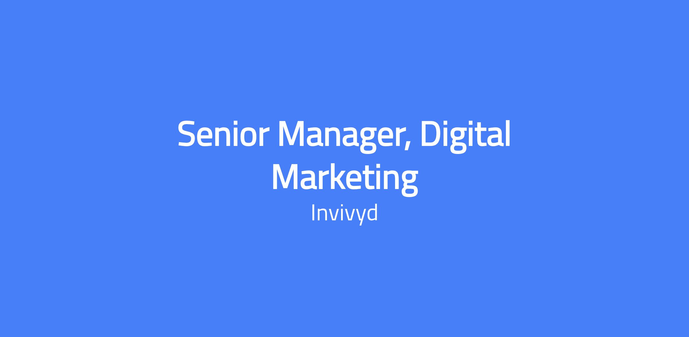 The Senior Manager, Digital Marketing will be an integral part of the marketing team, helping to shape our digital presence and drive digital and social media marketing strategies and executions. Reporting to the Director of Marketing, this position encompasses a wide range of responsibilities, from developing and executing digital marketing campaigns to analyzing performance metrics and optimizing digital tactics to drive and advance HCP, consumer, patient and community engagement. This role will collaborate closely with members of HCP and consumer marketing team and several cross-functional partners to ensure that all digital communications are compliant and aligned with Invivydโs goals and objectives.