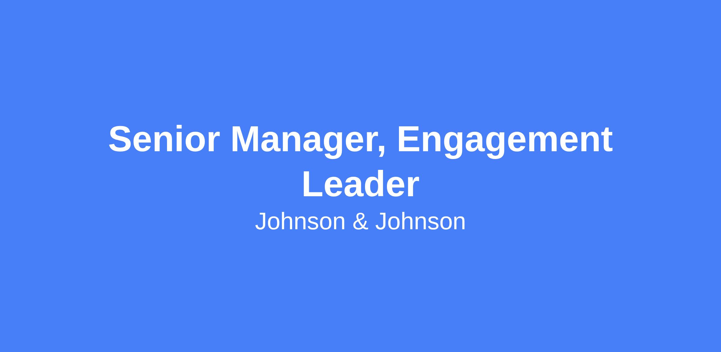 Senior Manager, Engagement Leader to lead the engagement strategy for a Technology functional area at Johnson & Johnson, enabling business outcomes through AI-enabled, human-centered approaches. Location: New Jersey (preference for New Brunswick, NJ or Titusville, NJ). Two openings available.