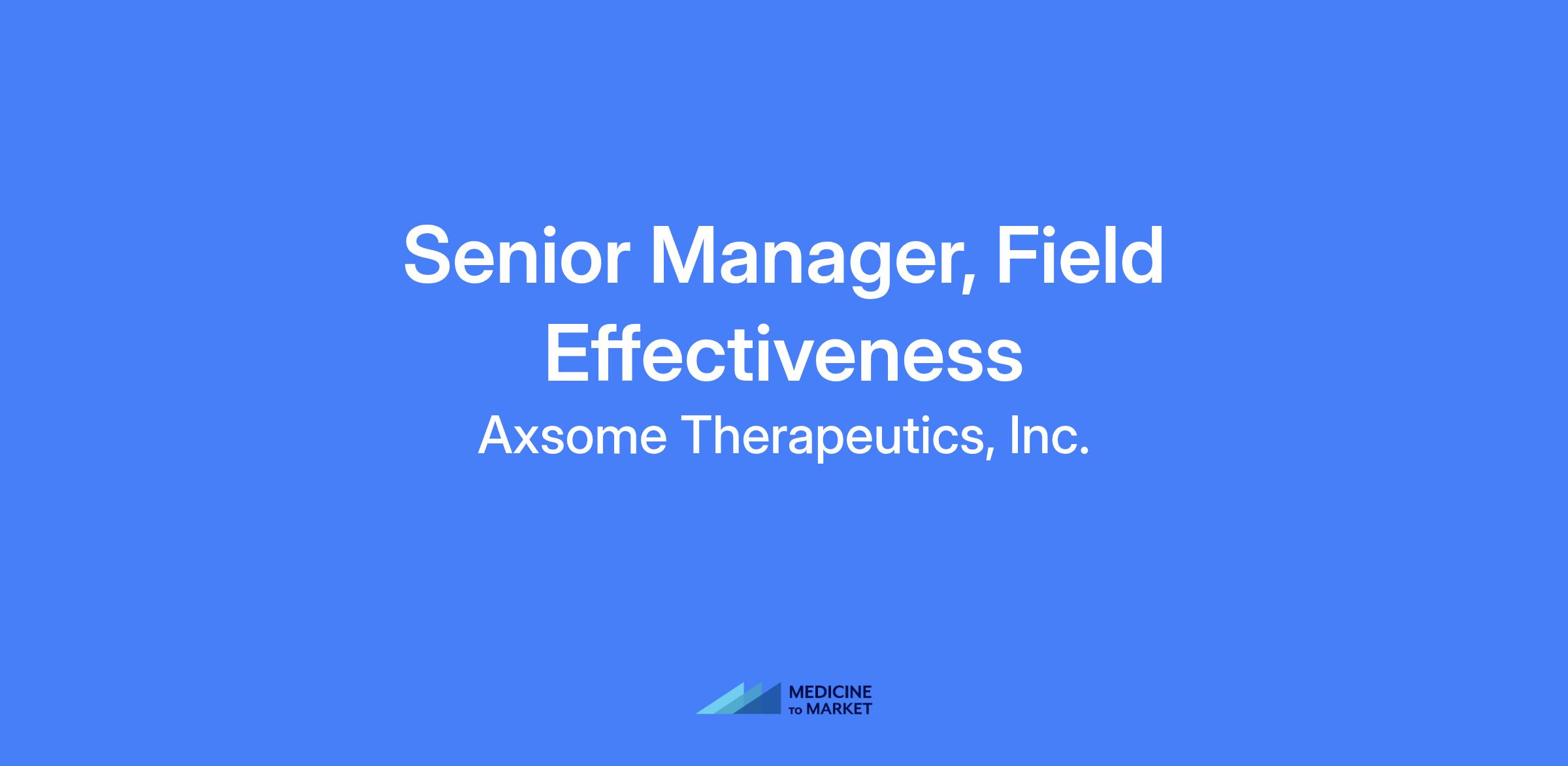 Axsome Therapeutics is currently searching for a Senior Manager, Field Effectiveness to support our commercial product launches. The Senior Manager, Field Effectiveness is responsible for maximizing the effectiveness of the field teams to ensure success of our commercial launches. Key responsibilities include 1) Effective management of sales operations processes, 2) Design, optimize Incentive Compensation plans to maximize the effectiveness and motivation of sales force, 3) Optimize HCP engagement plans, HCP targeting and field reporting to maximize field execution, 4) Enable field teams to maximize the use of data, reporting and insights and 5) Proactive analytics and insights to increase Sales Force Effectiveness