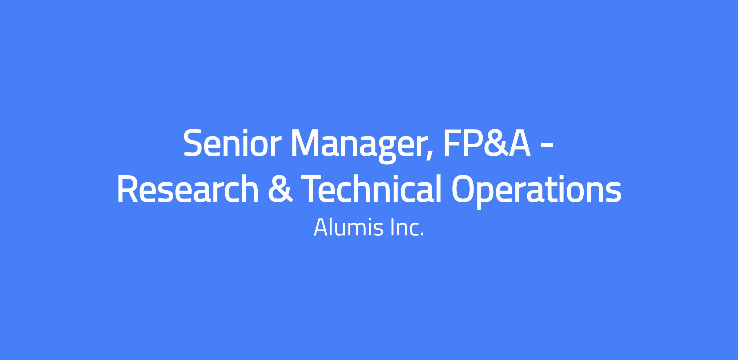 We are seeking an experienced Senior Manager, FP&A – Research & Technical Operations to join our team in a fast-paced, high-growth environment. This position will serve as a strategic finance business partner to the Research and Technical Operations organizations, supporting a growing portfolio of programs and operational priorities. In this role, you will play a critical part in driving planning and forecasting processes, delivering decision support for functional leadership, and assisting the Sr. Director of FP&A in overall planning strategy and execution. This position will also involve close interaction with the Accounting team during month-end close processes.