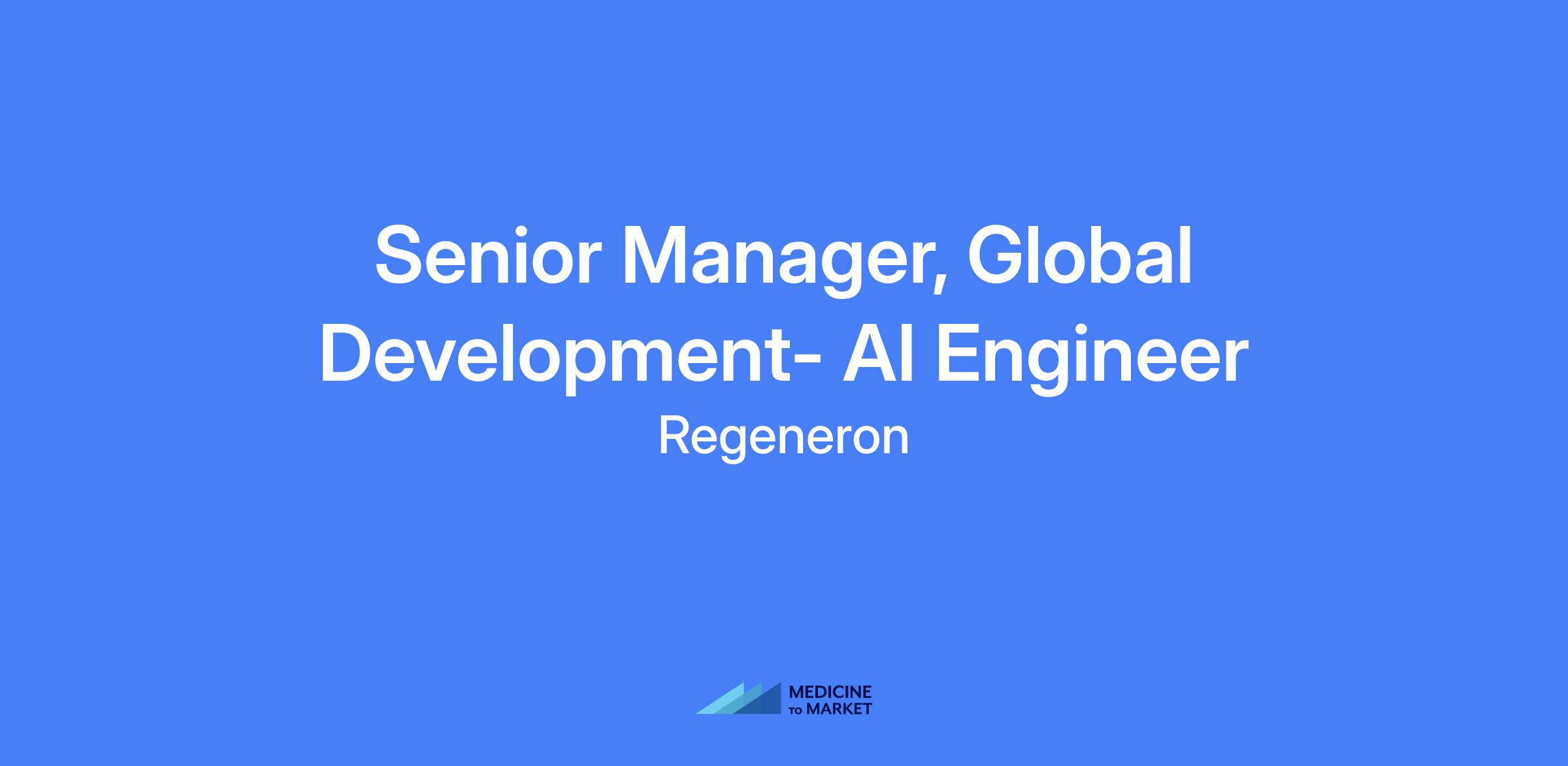 Senior Manager, Global Development - AI Engineer. Global Development is undertaking a digital transformation to integrate AI, machine learning, and automation into processes to reduce cycle times, improve quality, and enable more meaningful work. The role will develop platforms, processes, and technologies to incorporate AI across GD, working with engineers and scientists to drive transformative change and collaborating with stakeholders across Regeneron to align solutions with corporate strategy.