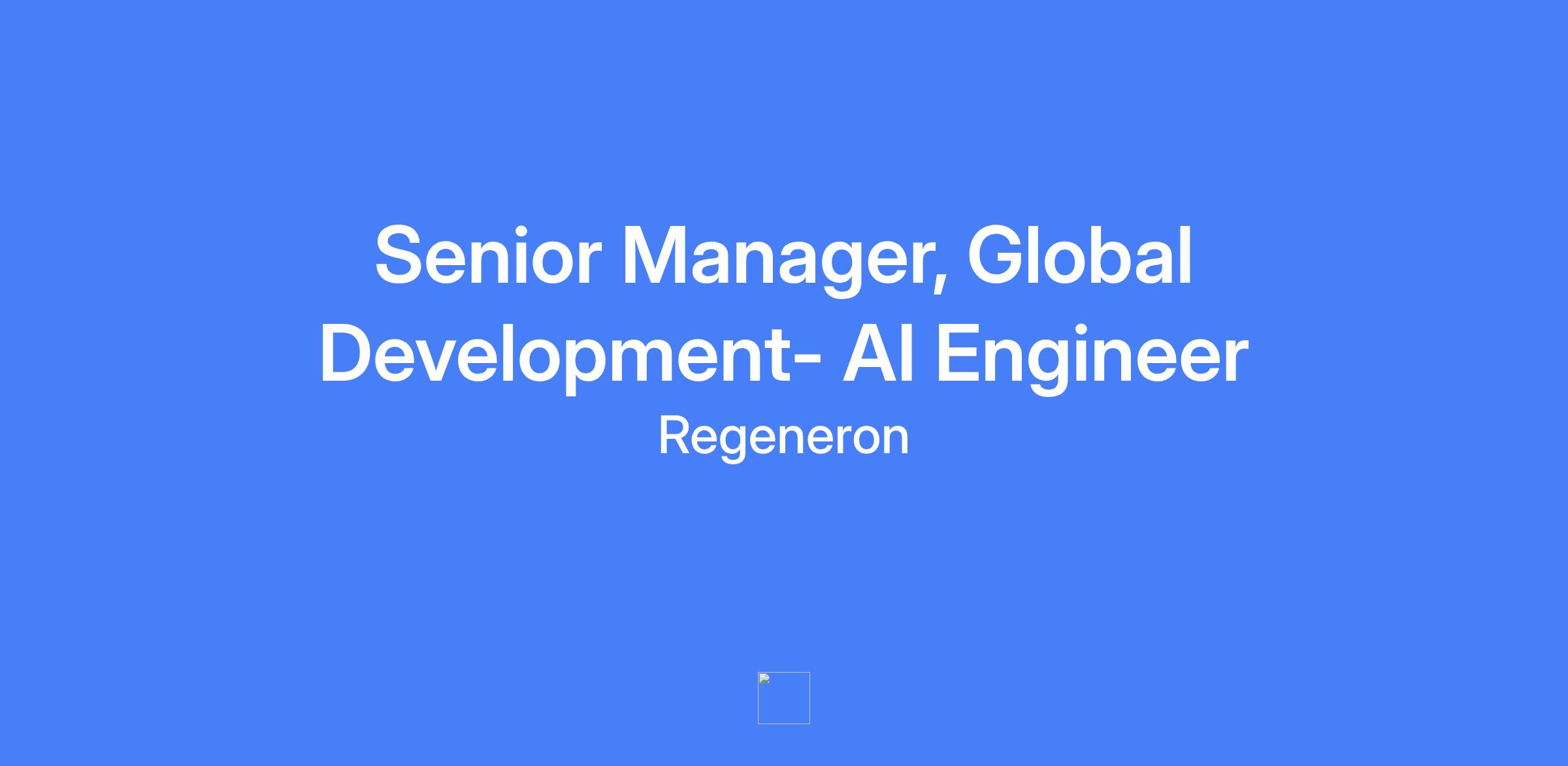 Senior Manager, Global Development - AI Engineer. Global Development is undertaking a digital transformation to integrate AI, machine learning, and automation into processes to reduce cycle times, improve quality, and enable more meaningful work. The role will develop platforms, processes, and technologies to incorporate AI across GD, working with engineers and scientists to drive transformative change and collaborating with stakeholders across Regeneron to align solutions with corporate strategy.