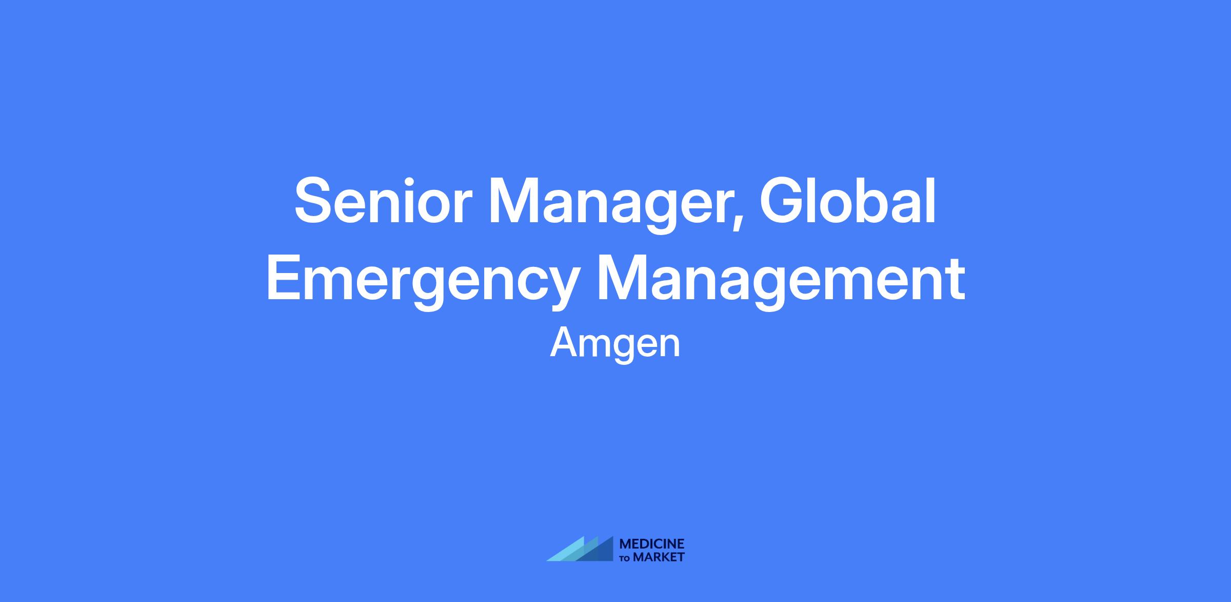 Senior Manager, Global Emergency Management. In this vital role you will work with internal and external collaborators on key deliverables needed for the success of the Global Emergency Management program, ensuring GEM efforts support the foundation of Amgen's Emergency Management program.