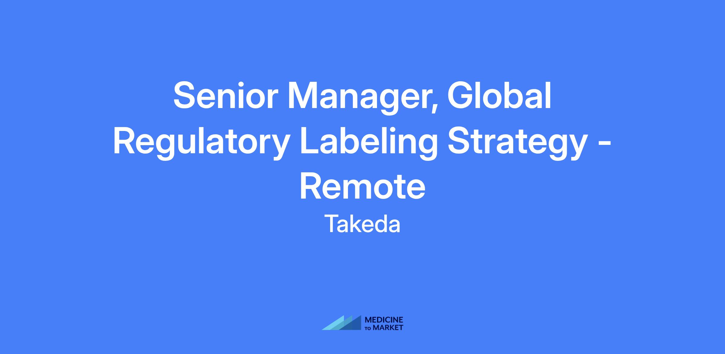 Senior Manager, Global Regulatory Labeling Strategy - Remote. Responsible for the development and implementation of labeling content and strategy for assigned product(s) across drug development stages, including updates to TLP, CCDS, USPI, and EU SmPC, with support for high-complexity products.