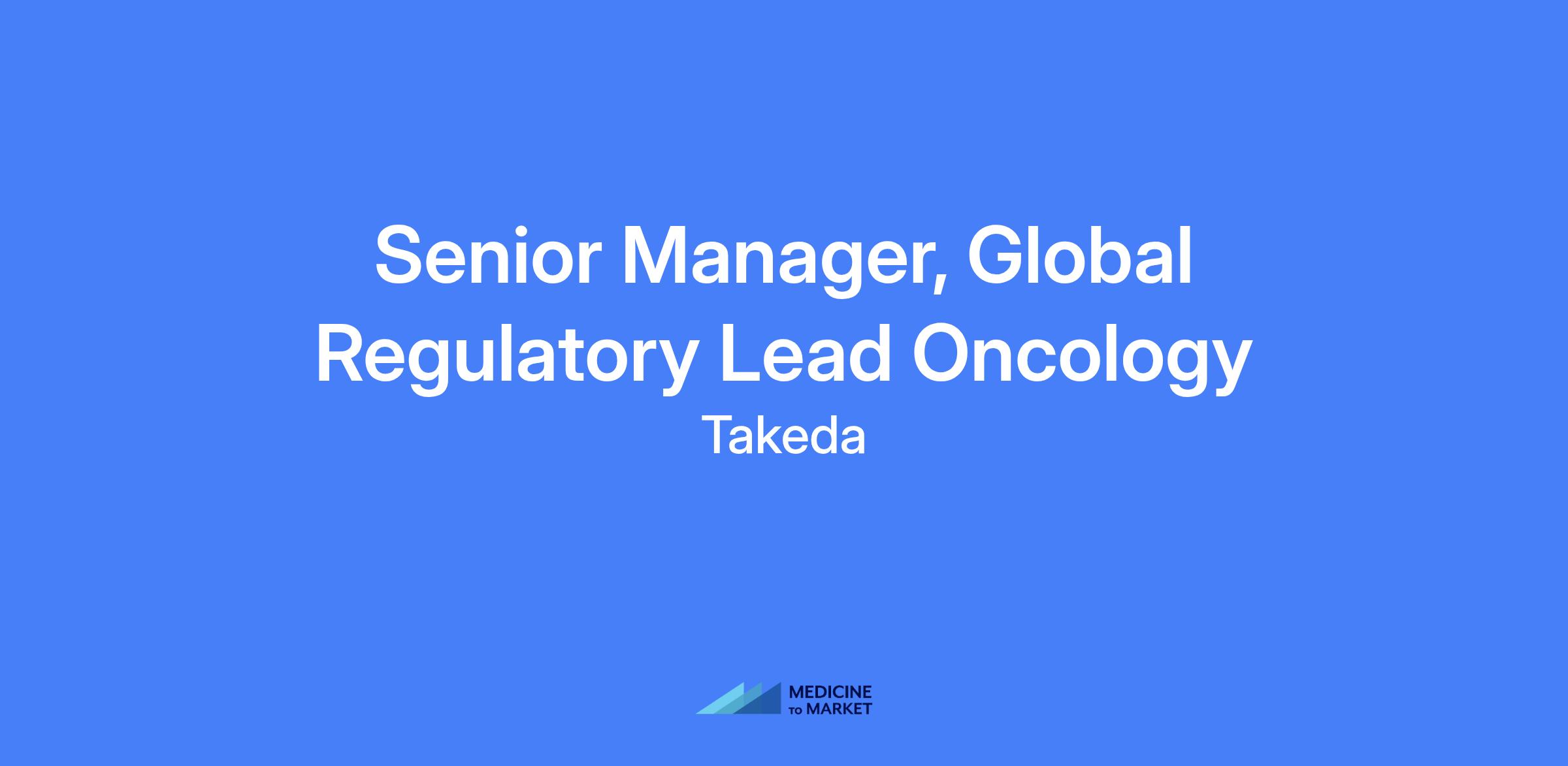 Senior Manager, Global Regulatory Lead Oncology at Takeda. Responsible for developing strategies to maximize regulatory success and provide strategic and tactical guidance to teams to achieve timely and efficient development and maintenance of programs while ensuring regulatory compliance.