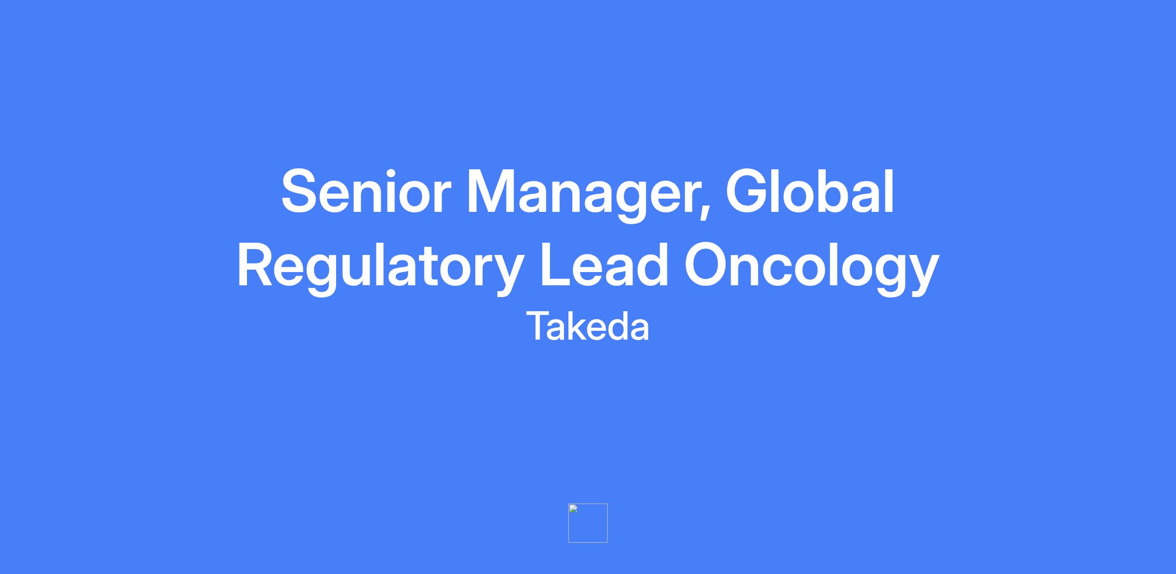Senior Manager, Global Regulatory Lead Oncology at Takeda. Responsible for developing strategies to maximize regulatory success and provide strategic and tactical guidance to teams to achieve timely and efficient development and maintenance of programs while ensuring regulatory compliance.