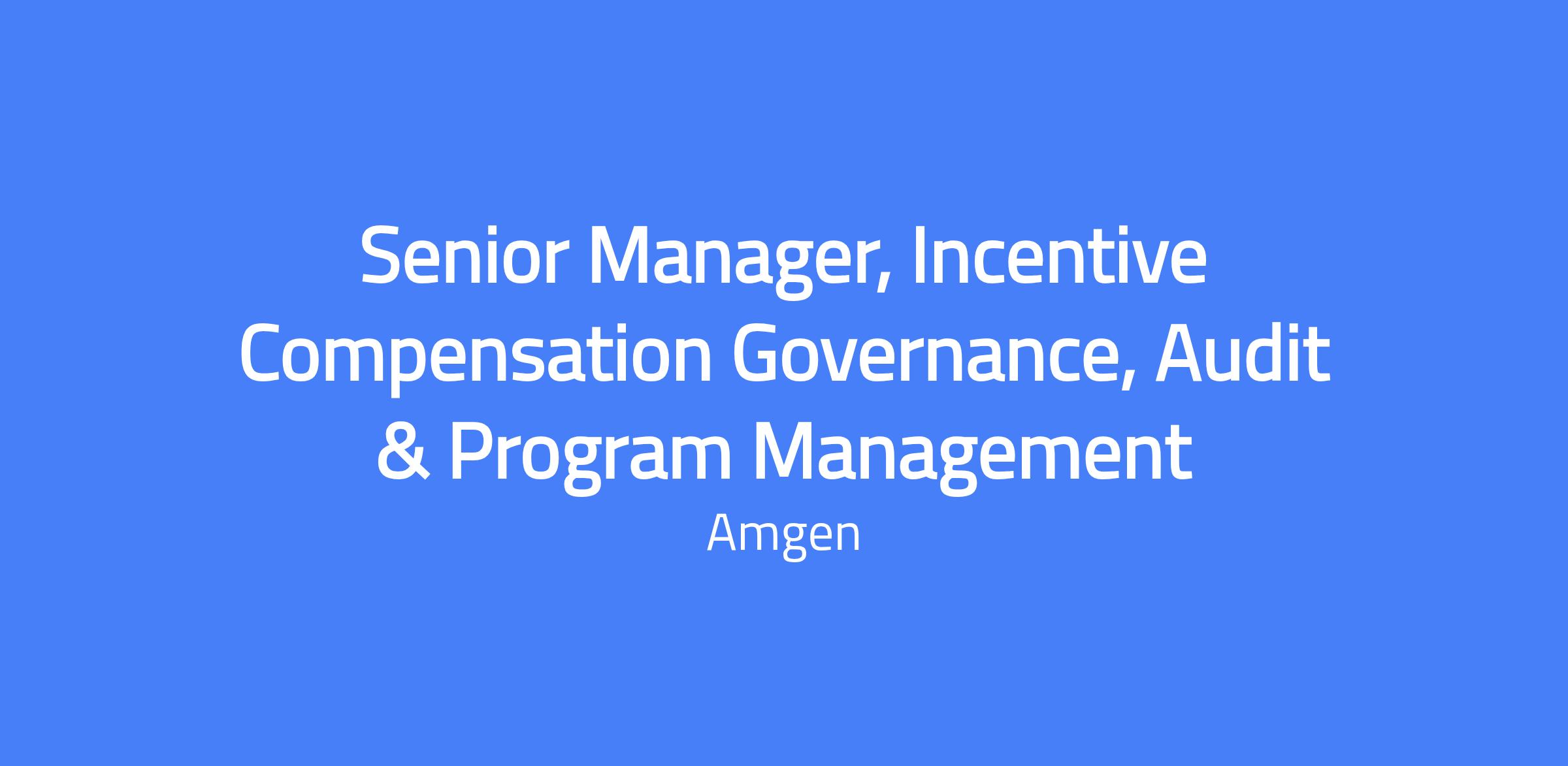 Senior Manager, IC Governance, Audit & Program Management at Amgen. The role leads governance and audit readiness for incentive compensation programs within the US Field Excellence team, driving disciplined program management across IC design and operations for large, multi-therapeutic sales organizations. This is an individual contributor role with enterprise-wide influence, partnering with Sales Operations, Finance, HR, Compliance, IT, and Audit. Location: Thousand Oaks, CA or Deerfield, IL; on-site 2 to 3 days per week.