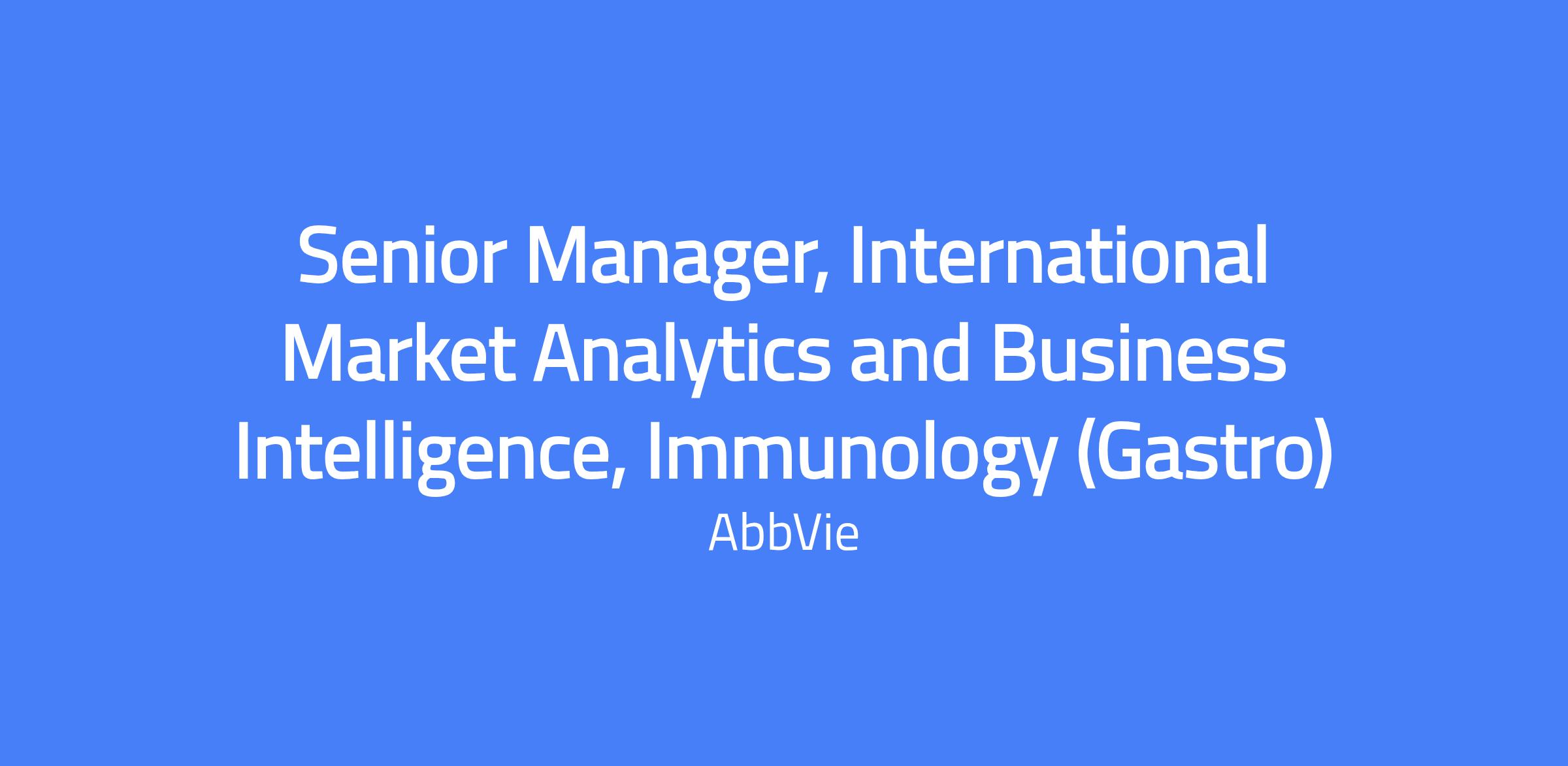 The Senior Manager, International Market Analytics and Business Intelligence (IMABI) serves as a strategic partner to internal stakeholders, leveraging data, secondary analyses, and primary market research to inform and drive operational decisions. This role leads the IMABI voice on business teams, delivering insights and actionable recommendations to support key business needs and objectives, while representing the voice of the customer to enable better patient outcomes.