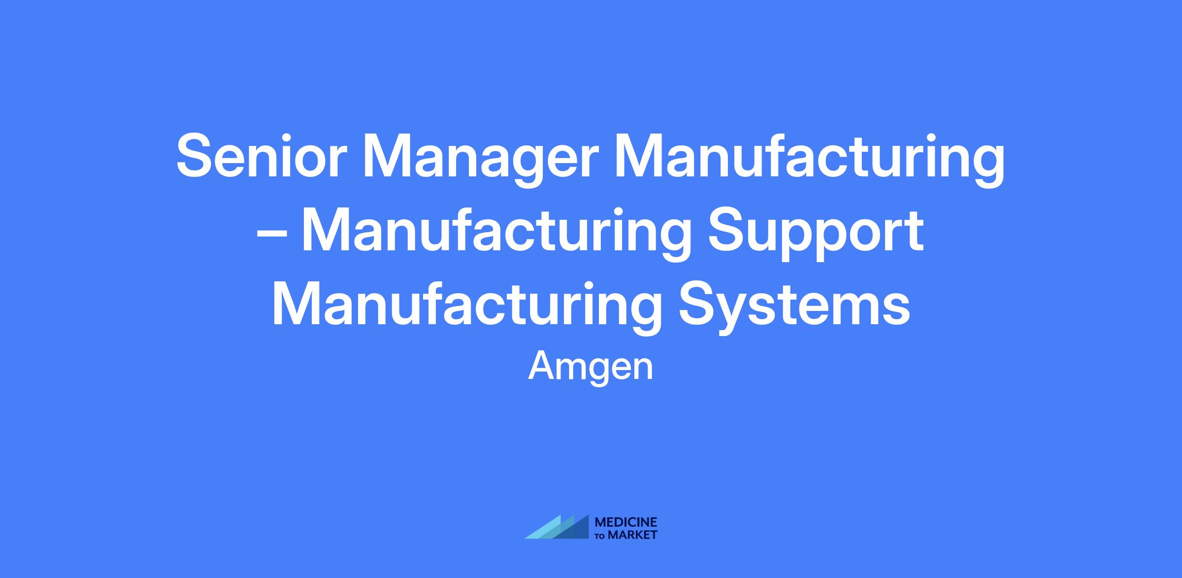Senior Manager Manufacturing โ€“ Manufacturing Support Manufacturing Systems