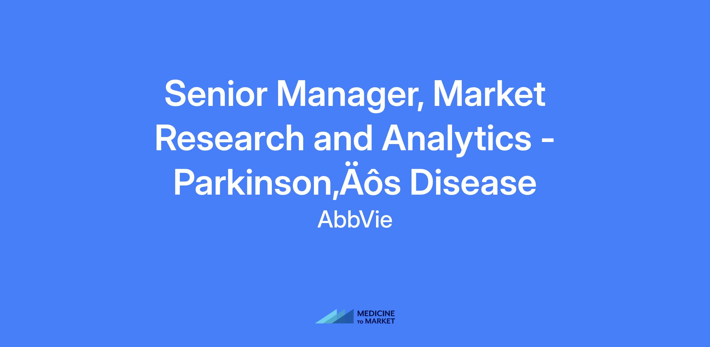 Senior Manager, Market Research and Analytics - Parkinson’s Disease. Role focuses on partnering with US Parkinson’s Disease leadership to deliver insights that inform brand strategy and identify opportunities through marketing analytics and measurement of brand strategies at national and sub-national levels.