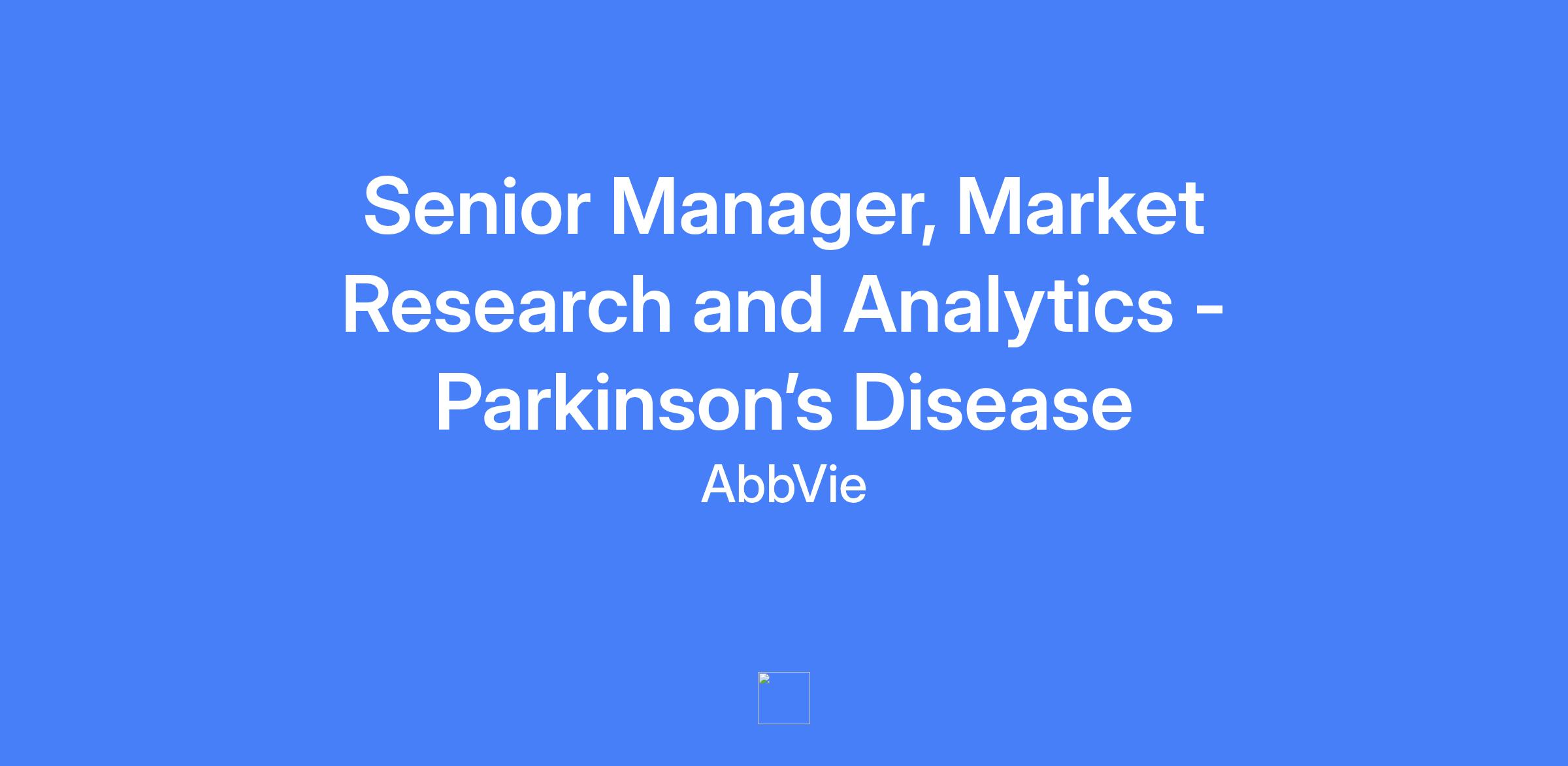Senior Manager, Market Research and Analytics - Parkinson’s Disease. Role focuses on partnering with US Parkinson’s Disease leadership to deliver insights that inform brand strategy and identify opportunities through marketing analytics and measurement of brand strategies at national and sub-national levels.