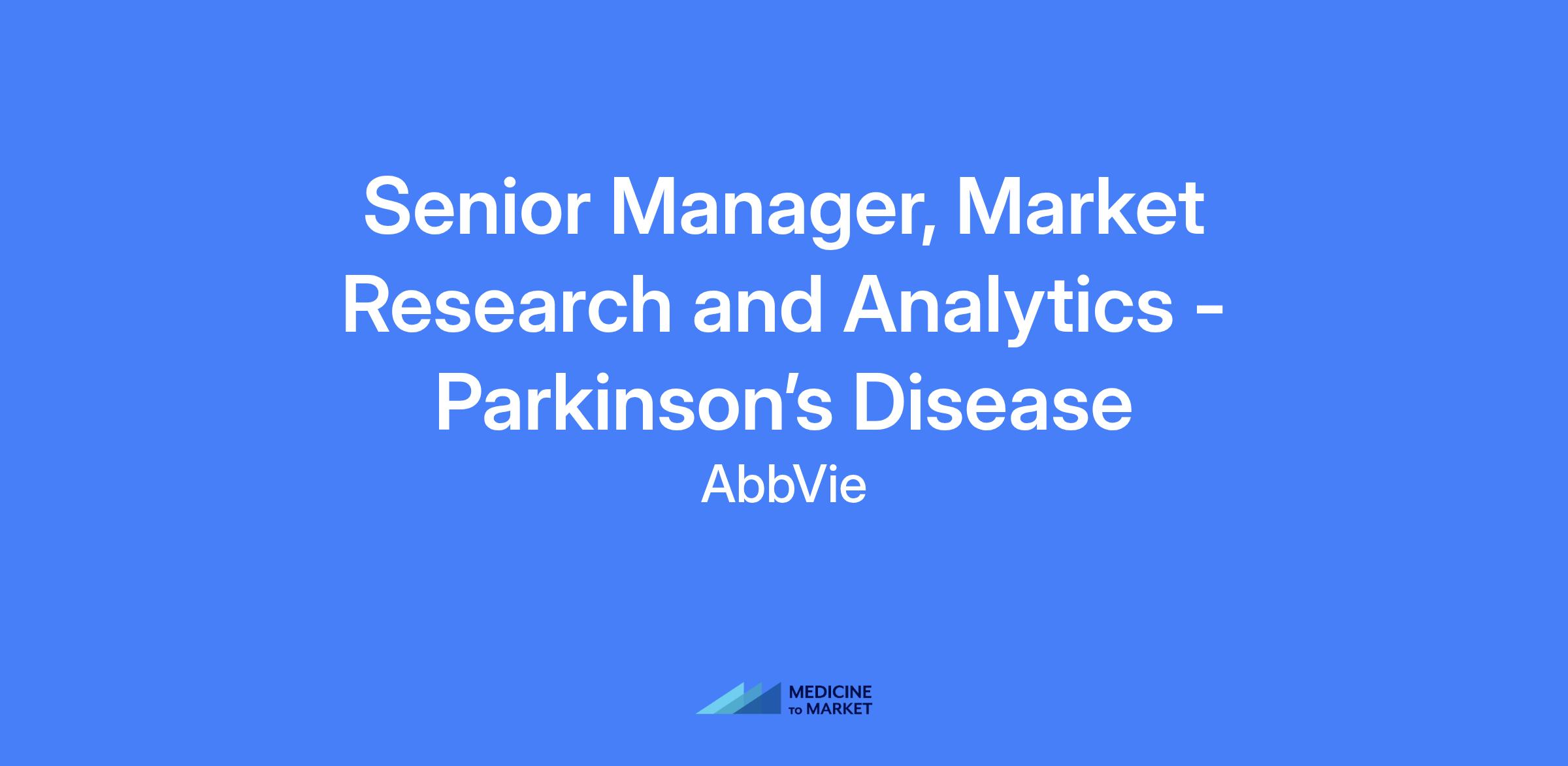 Senior Manager, Market Research and Analytics - Parkinson’s Disease. Role focuses on partnering with US Parkinson’s Disease leadership to deliver insights that inform brand strategy and identify opportunities through marketing analytics and measurement of brand strategies at national and sub-national levels.