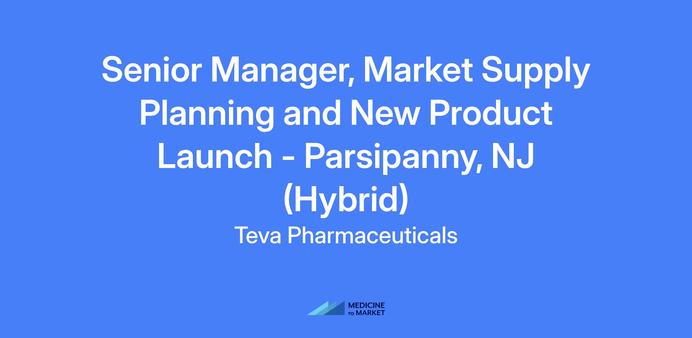 Senior Manager, Market Supply Planning and New Product Launch – Parsippany, NJ (Hybrid) — lead the planning process to support US launches and manage supply chain activities from 12 months prior to launch through 6 months post-launch, coordinating with global and US teams to ensure successful new product introductions.