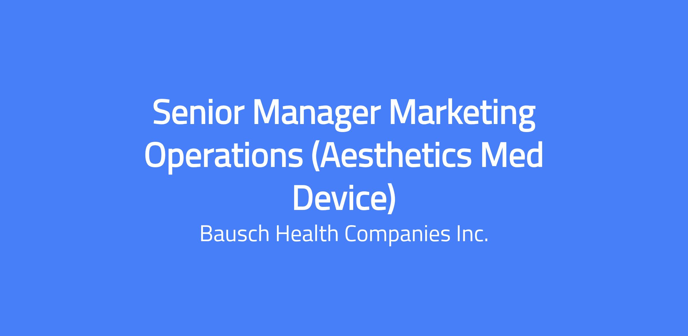 Senior Manager Marketing Operations (Aesthetics Med Device)