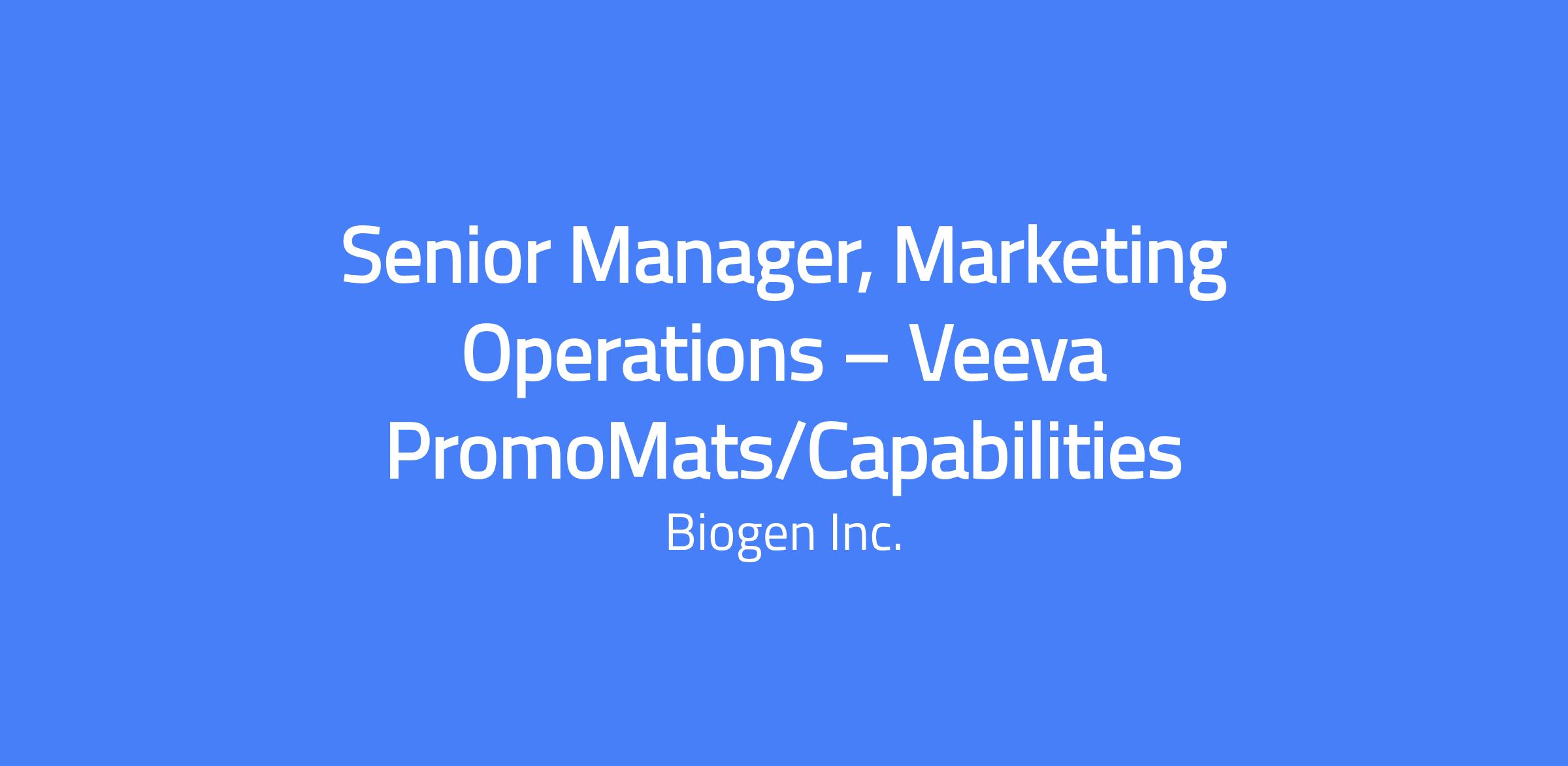Senior Manager, Marketing Operations – Veeva PromoMats/Capabilities