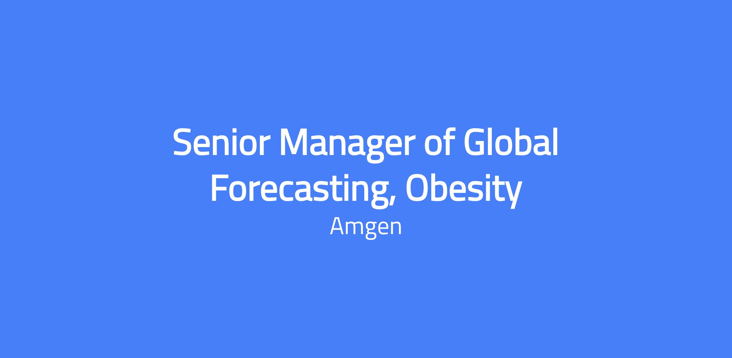 Senior Manager of Global Forecasting, Obesity at Amgen responsible for leading advanced forecasting efforts for obesity pipeline assets, partnering with global brand leads, and influencing cross-functional stakeholders to establish rigorous worldwide sales expectations and strategic decisions.