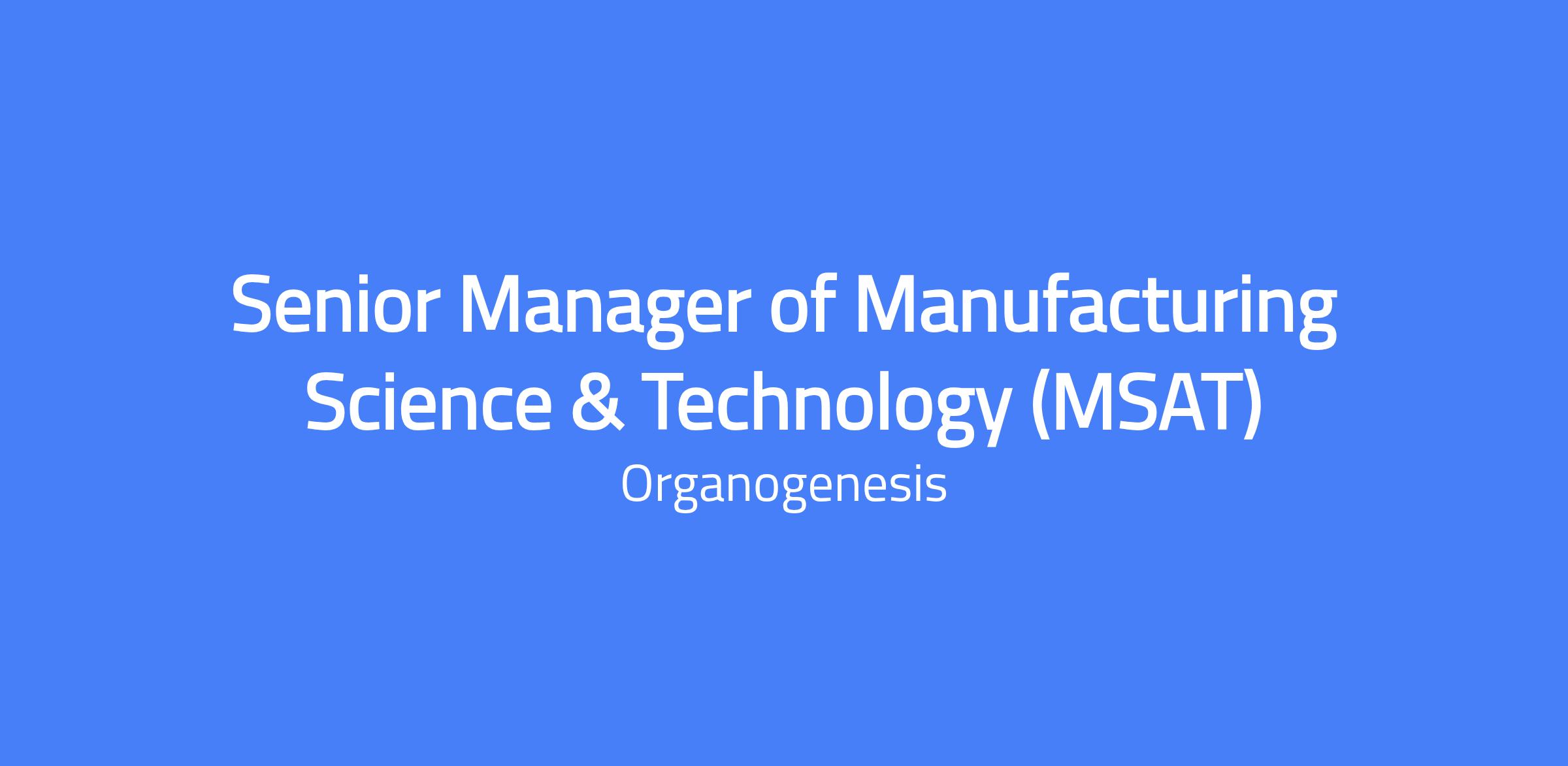 Senior Manager of Manufacturing Science & Technology (MSAT)