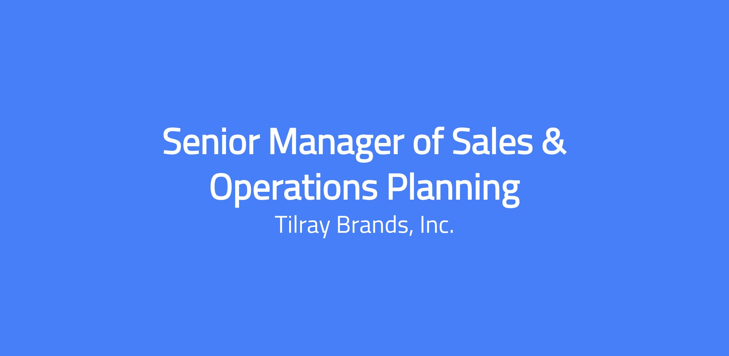 - Lead the establishment and ongoing governance of a new Tilray Beverage Sales & Operations Planning function.