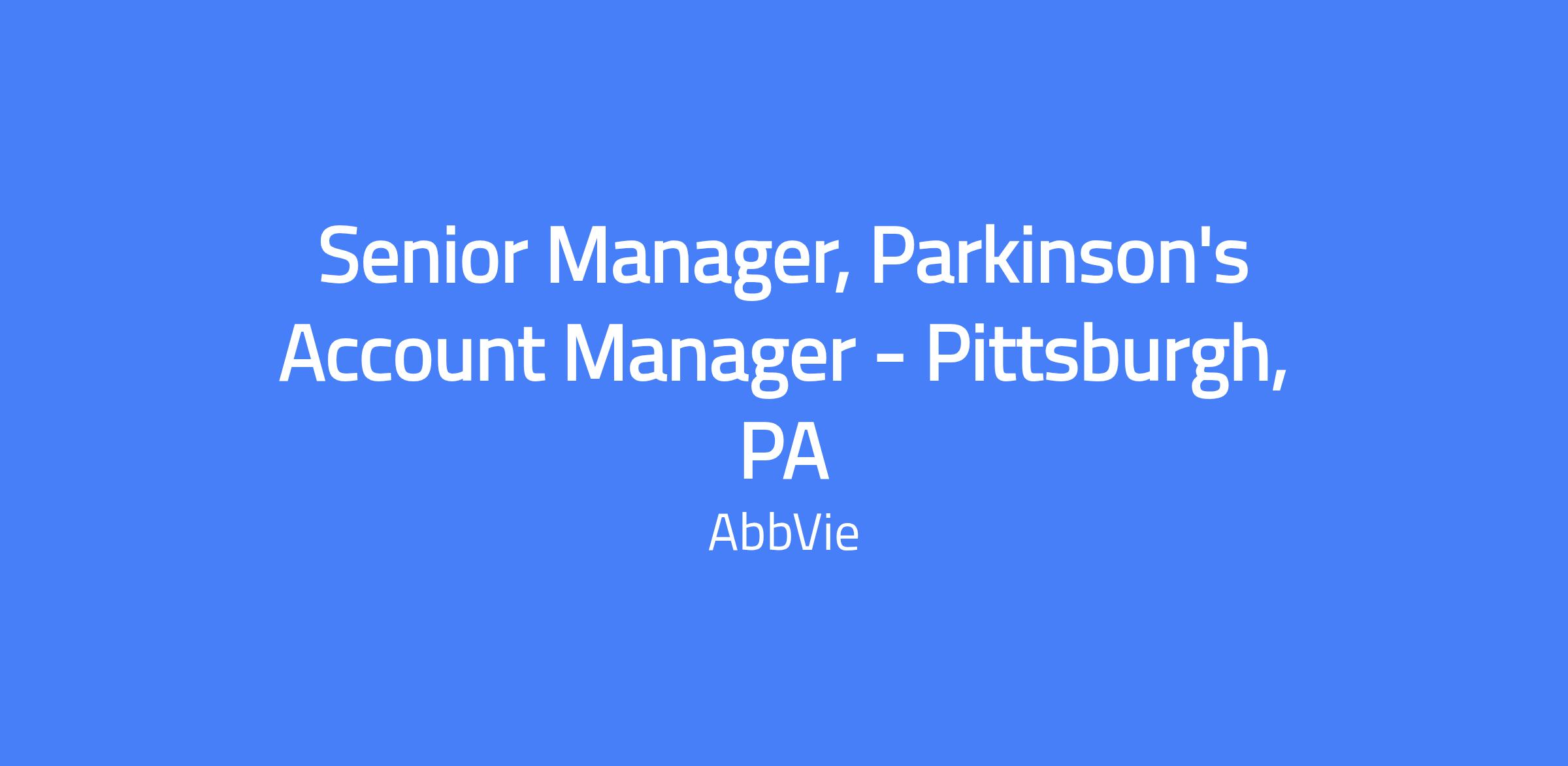 Senior Manager, Parkinson's Account Manager - Pittsburgh, PA