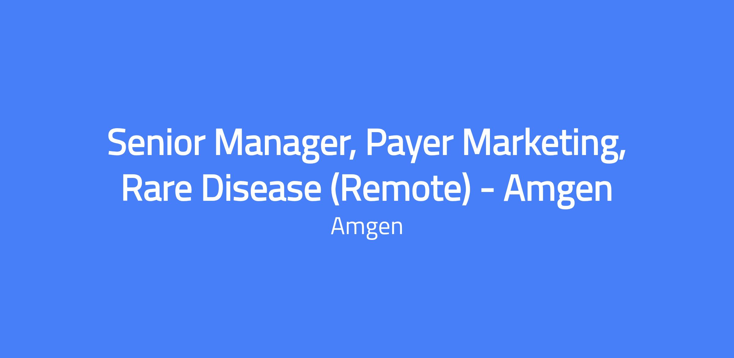 Senior Manager, Payer Marketing, Rare Disease (Remote) will support the US Value & Access team's mission to secure coverage for Amgen's brands and to support patient access. The role focuses on strengthening the payer value proposition and driving messaging during strategic payer discussions. It also leads US-RWE workstreams aligned with Global, HEOR, CfOR, Medical, and Brand teams to inform payer decisions.