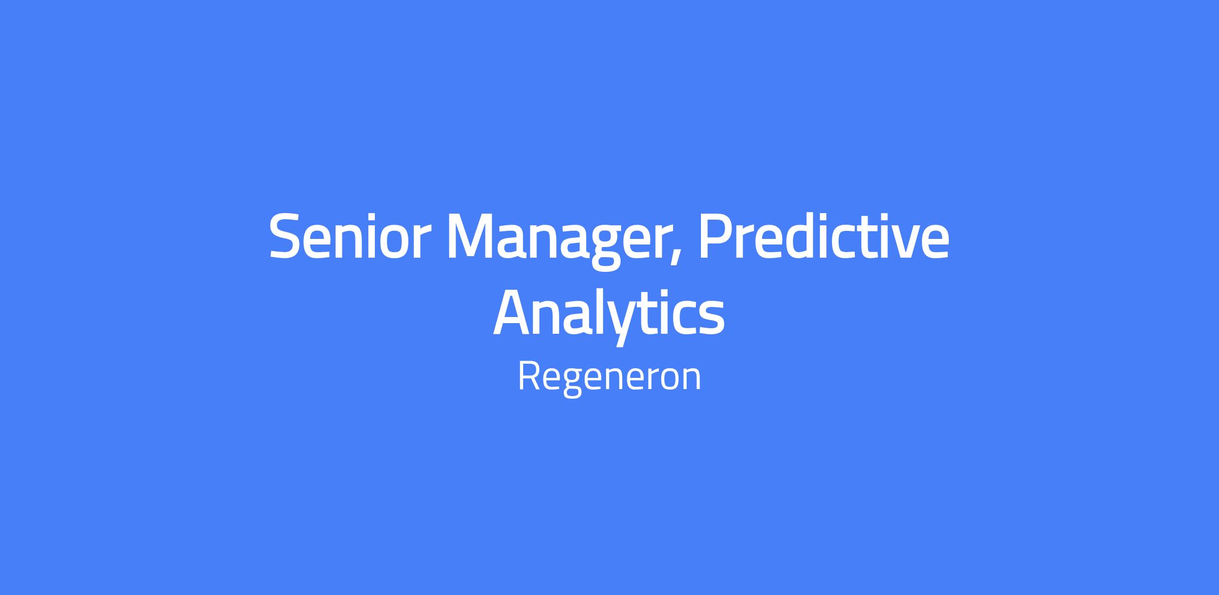 Senior Manager of Predictive Analytics to join the Regeneron Genetics Center (RGC) to pioneer clinical use cases for proteomic and genomic data. Develop and apply predictive models on large integrated datasets of genomics, proteomics, and electronic medical records. Partner with cross-functional teams to foster collaboration and advance key initiatives; the role requires the ability to influence and strong interpersonal and communication skills for a collaborative environment.