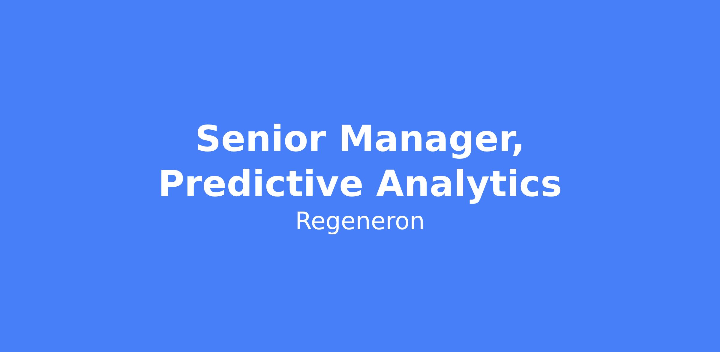 Senior Manager of Predictive Analytics to join the Regeneron Genetics Center (RGC) to pioneer clinical use cases for proteomic and genomic data. Develop and apply predictive models on large integrated datasets of genomics, proteomics, and electronic medical records. Partner with cross-functional teams to foster collaboration and advance key initiatives; the role requires the ability to influence and strong interpersonal and communication skills for a collaborative environment.